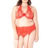 Muti Strap Lace 3 Pc Bra Set With Halter Tie Back, Lace Trim Garter Belt And G-String.