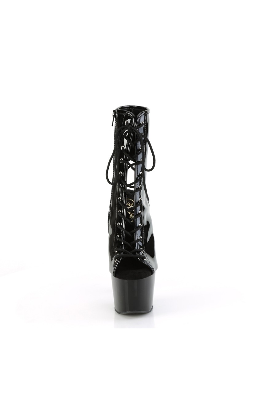 7″” (178mm) Heel, 2 3/4″” (70mm) Platform Open Toe/Back Lace-Up Front Ankle Boot, Inner Side Zip Closure