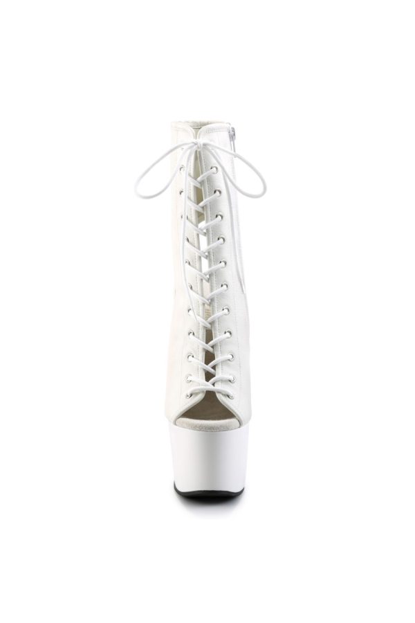 7″” (17.8cm) Stiletto Heel, 2 3/4″” (7cm) Platform Open Toe/Stiletto Heel Front Lace-Up Ankle Boot, Side Zip Closure