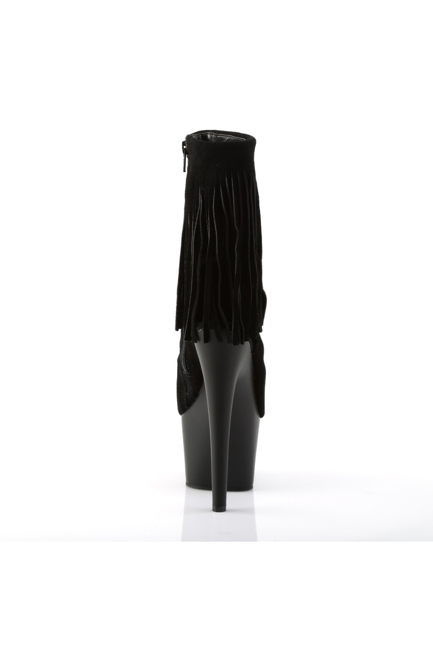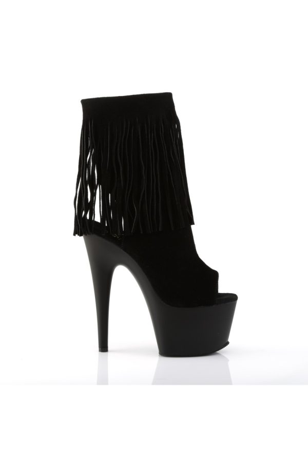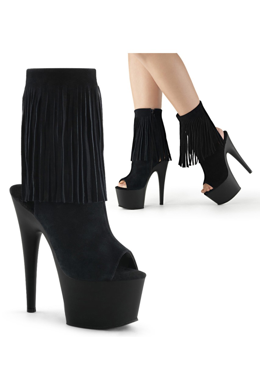 7″” (17.8cm) Stiletto Heel, 2 3/4″” (7cm) Platform Open Toe/Stiletto Heel Fringe Ankle Boot, Inner Side Zip Closure