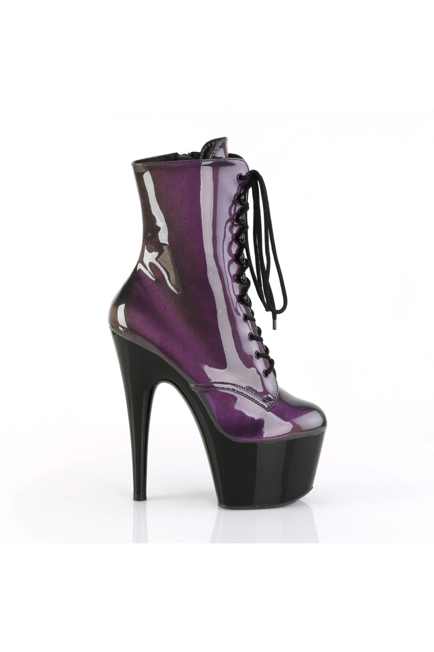 7″” (178mm) Heel, 2 3/4″” (70mm) Platform Lace-Up Front Ankle Boot, Inner Side Zip Closure