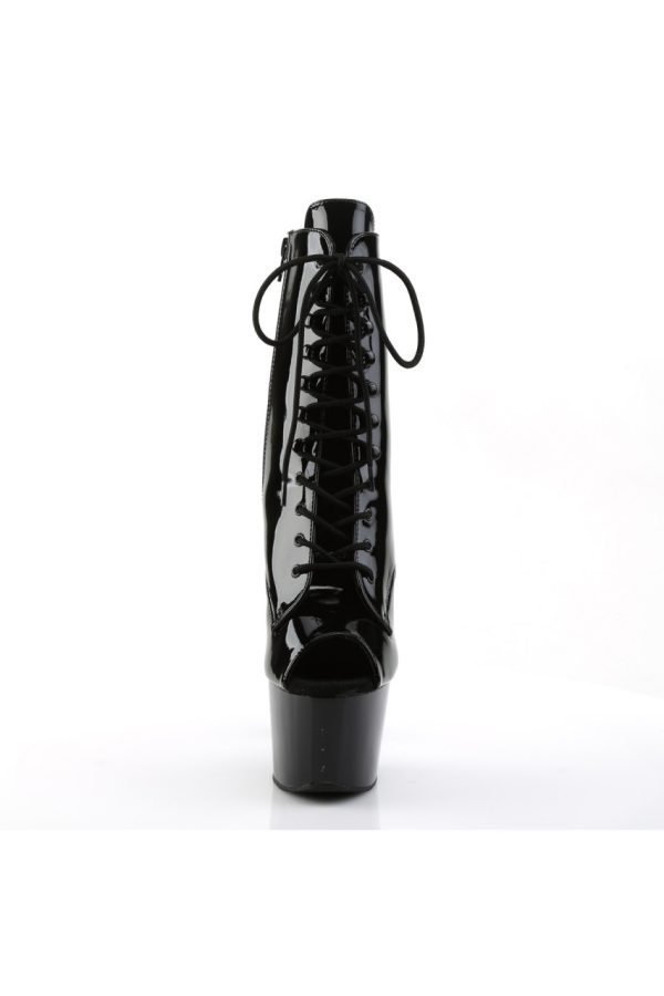 7″” (17.8cm) Stiletto Heel, 2 3/4″” (7cm) Platform Peep Toe Front Lace-Up Ankle Boot, Inner Side Zip Closure