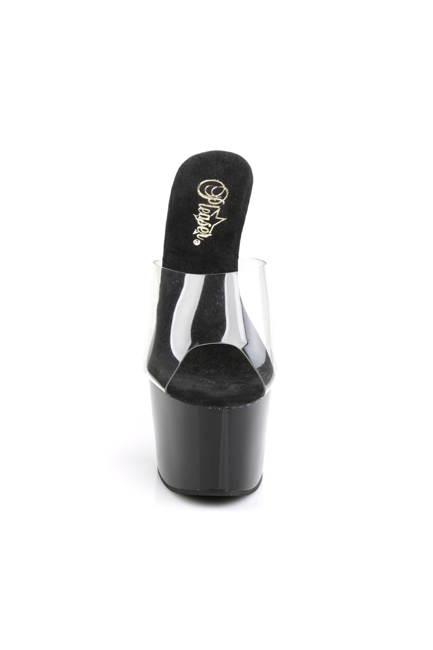 7″” (17.8cm) Stiletto Heel, 2 3/4″” (7cm) Platform Peep Toe Slide