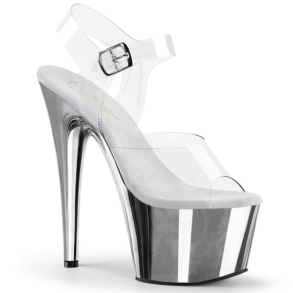7″ Heel, 2 3/4″ PF Ankle Strap Sandal w/ Chrome Plated Btm