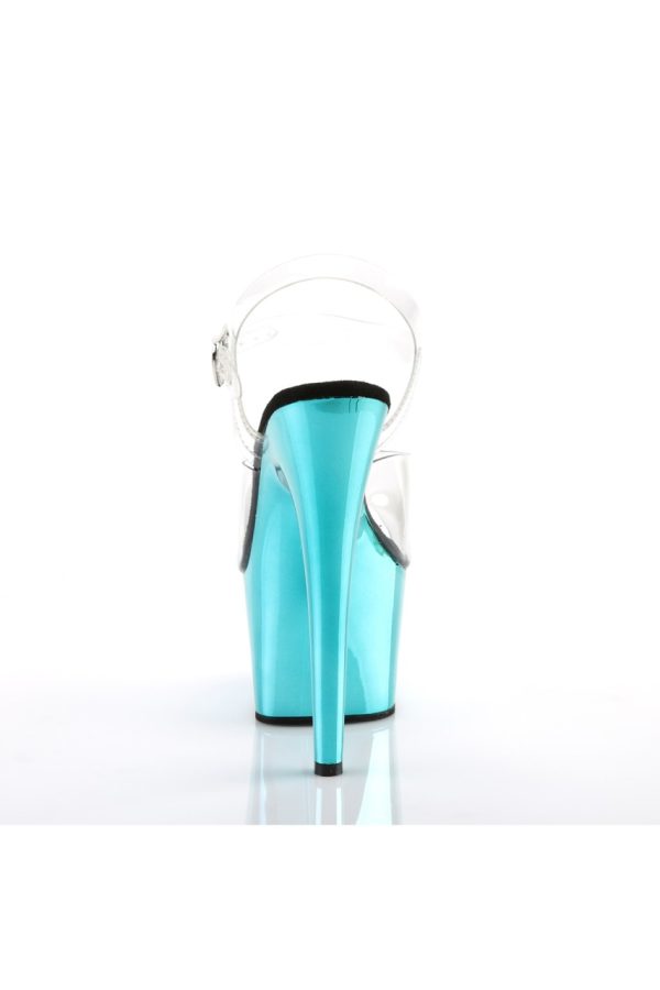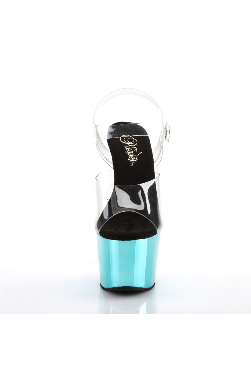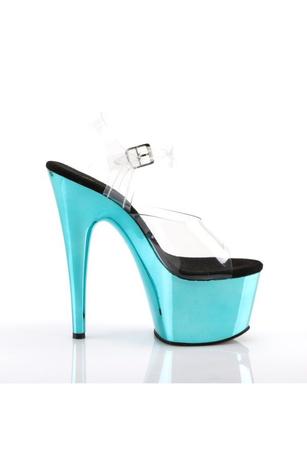 7″” (178mm) Heel, 2 3/4″” (70mm) Platform Ankle Strap Sandal w/ Chrome Plated Bottom