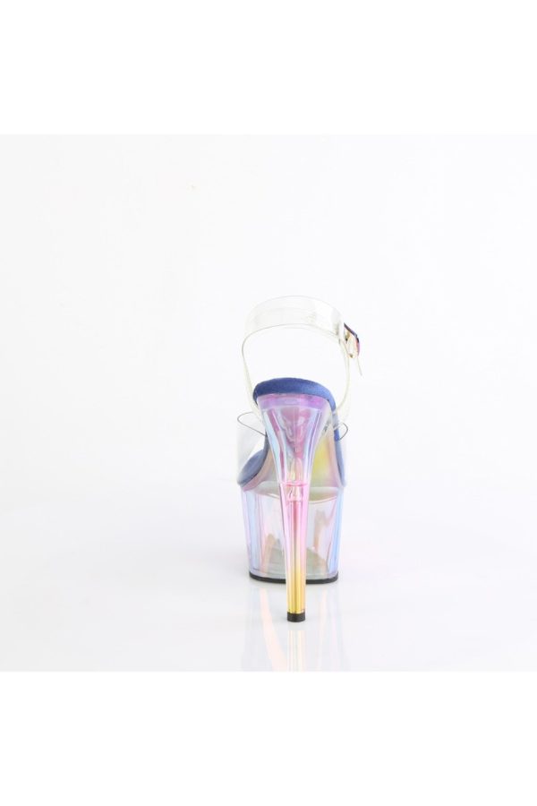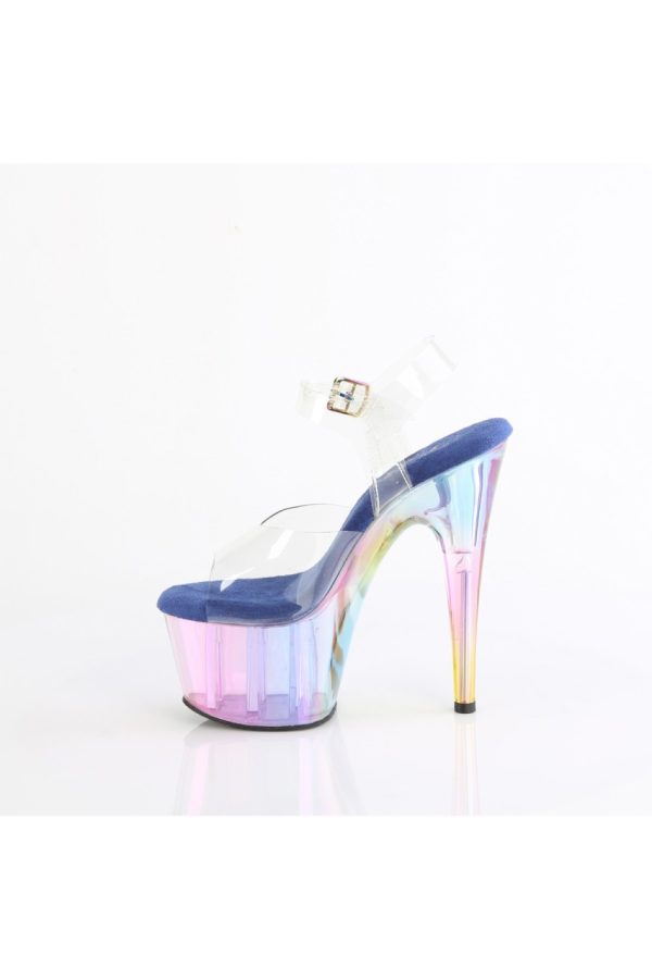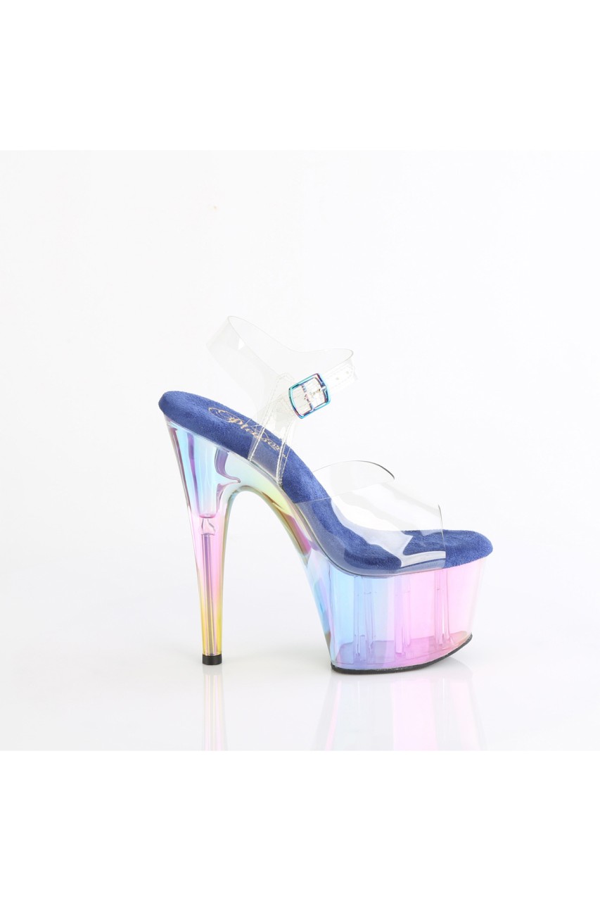 7″” (178mm) Heel, 2 3/4″” (70mm) Platform Ankle Strap Sandal Featuring Holographic Tinted Platform Bottom