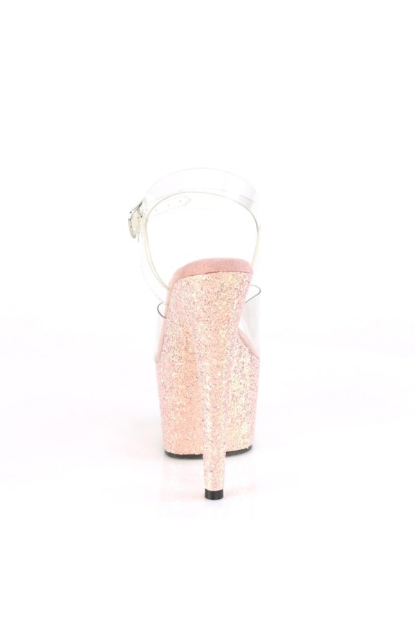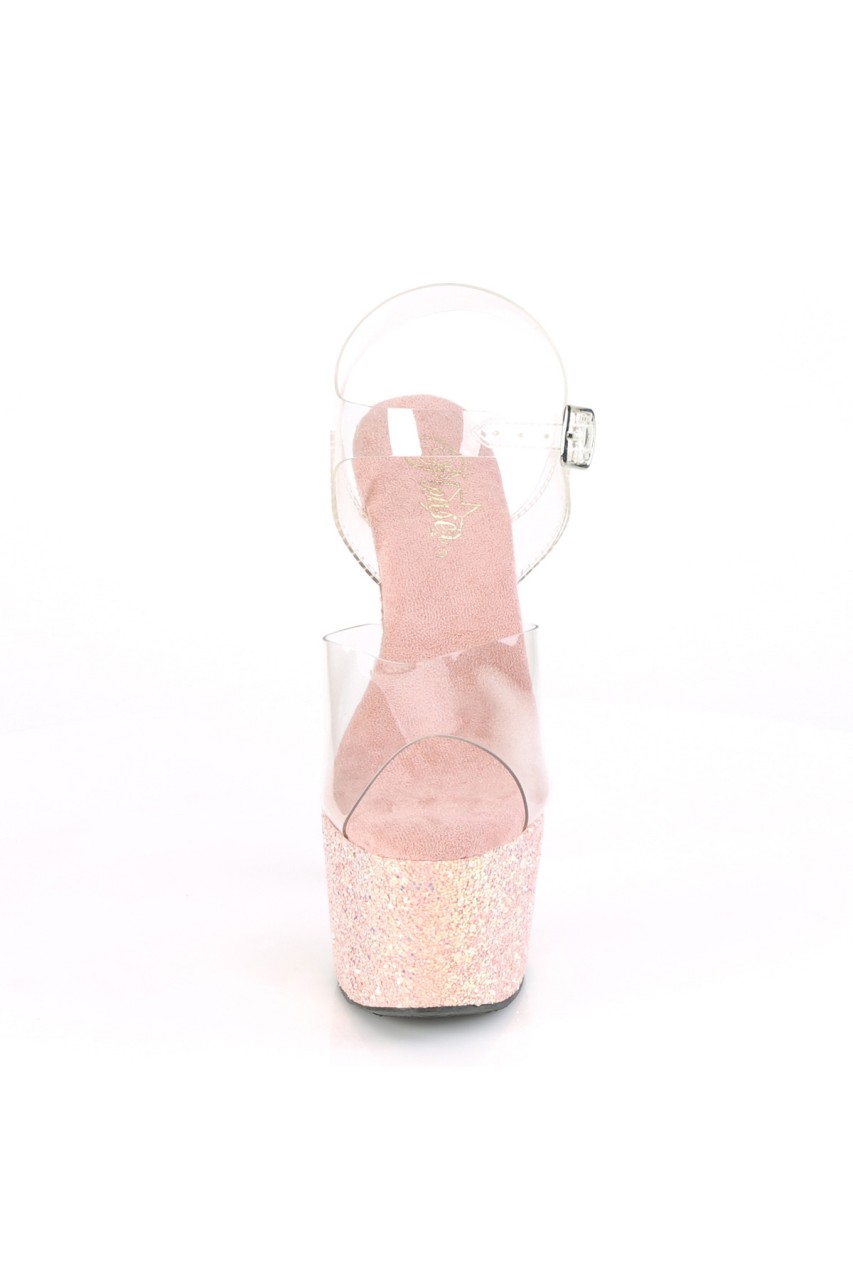 7″” (178mm) Heel, 2 3/4″” (70mm) Platform Ankle Strap Sandal Featuring Holographic Glitters Covering the Entire Platform Bottom