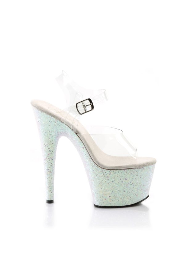 7″” (178mm) Heel, 2 3/4″” (70mm) Platform Ankle Strap Sandal Featuring Holographic Glitters on the Entire Platform Bottom
