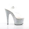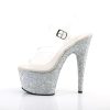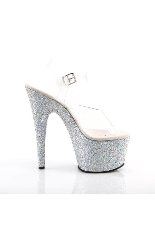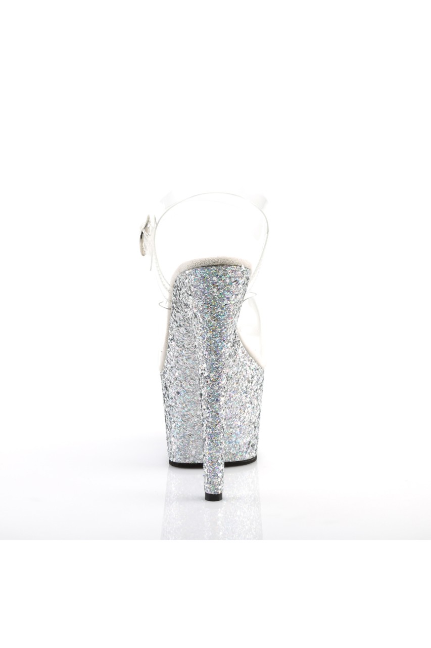 7″” (178mm) Heel, 2 3/4″” (70mm) Platform Ankle Strap Sandal Featuring Holographic Glitters on the Entire Platform Bottom