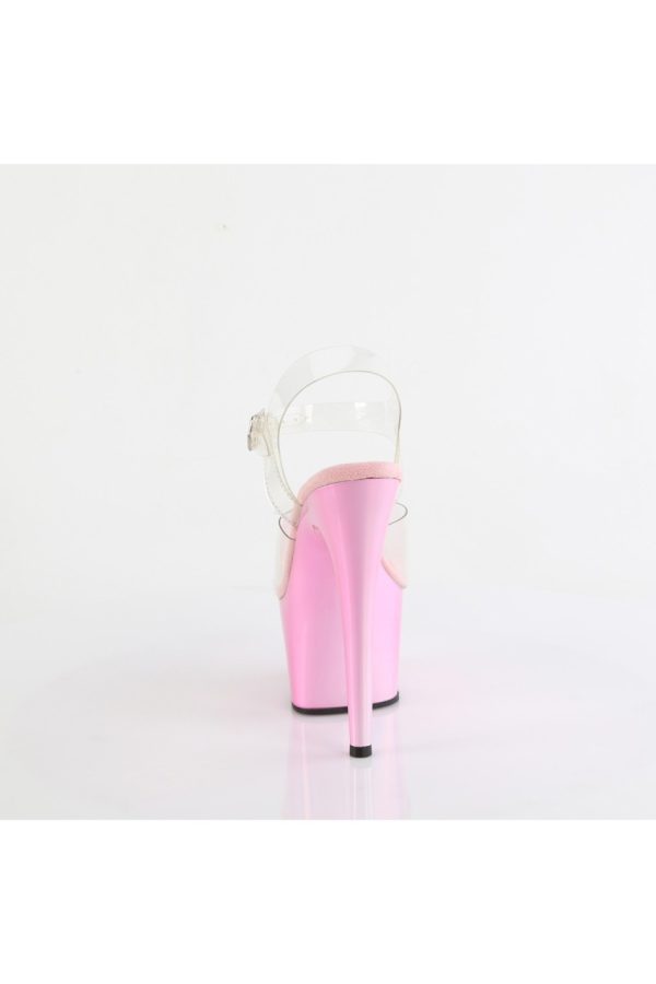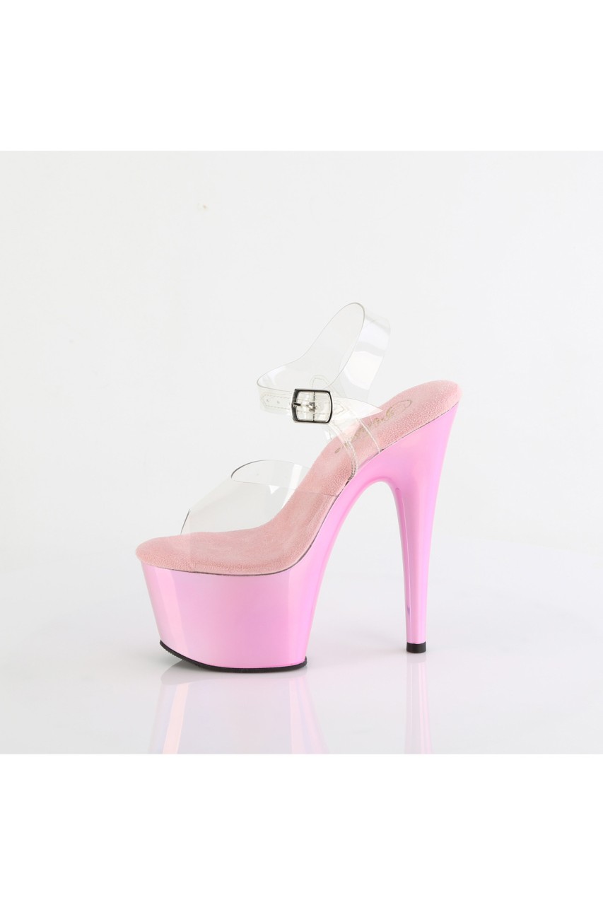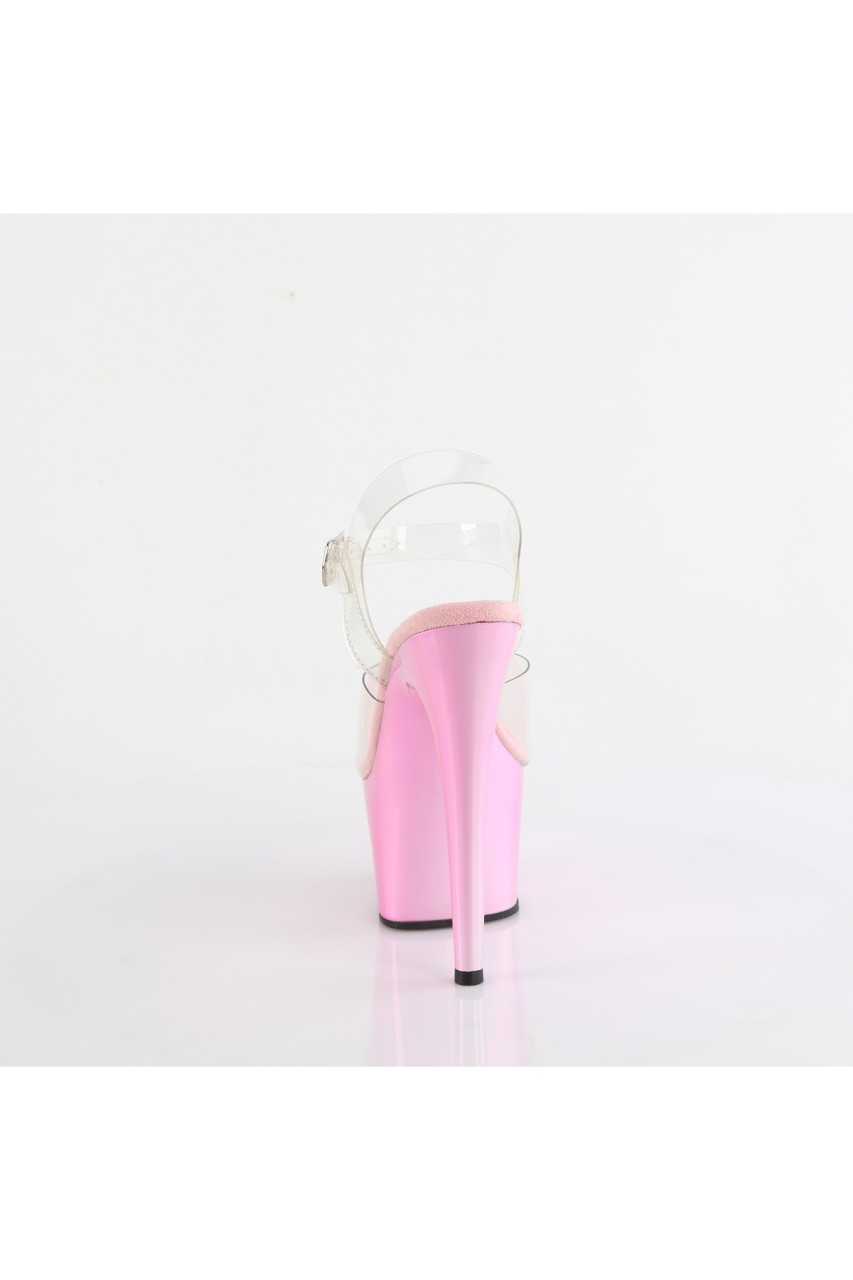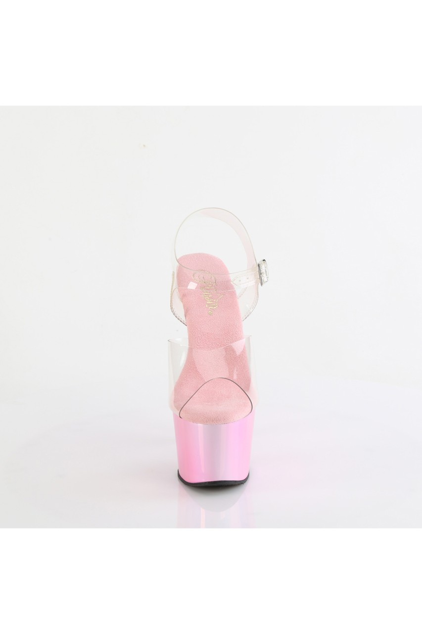 7″” (178mm) Heel, 2 3/4″” (70mm) Platform Ankle Strap Sandal Featuring Holographic Liquid Effect Platform Bottom