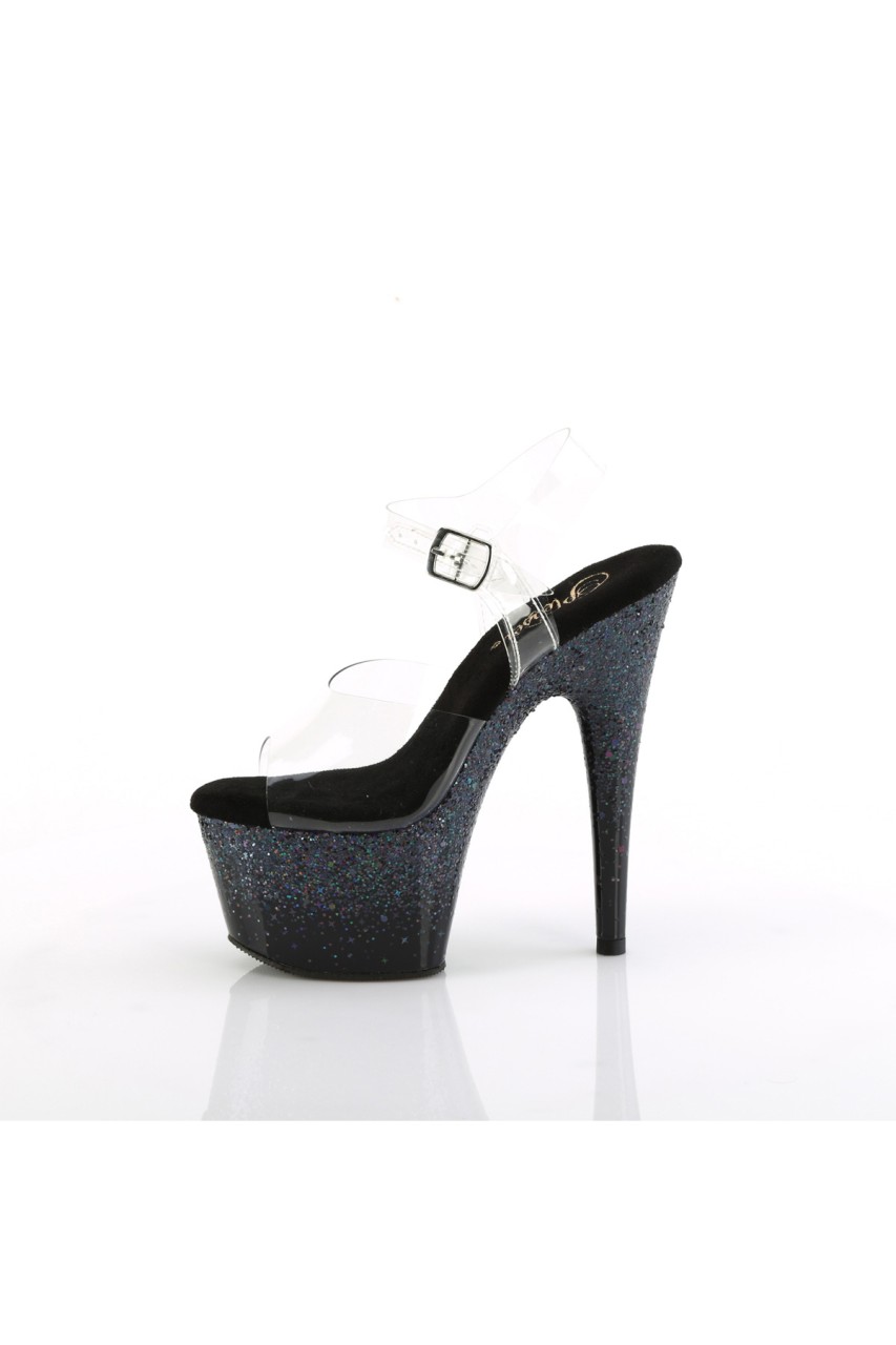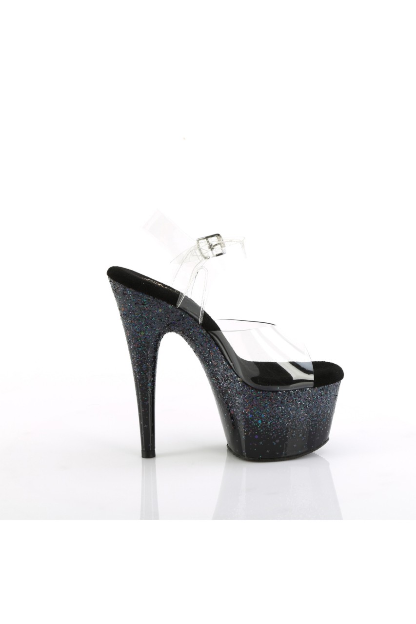 7″” (178mm) Heel, 2 3/4″” (70mm) Platform Ankle Strap Sandal w/Holographic Gradient Effect on the Platform Bottom
