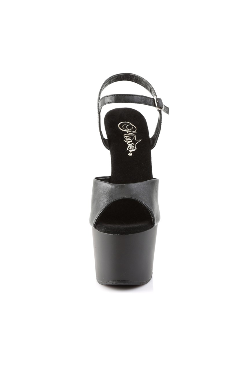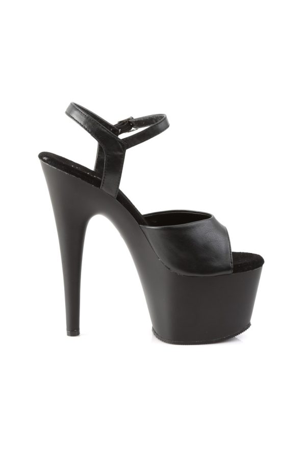 7″” (17.8cm) Stiletto Heel, 2 3/4″” (7cm) Platform Ankle Strap Sandal, Matte Black/Black Faux Leather