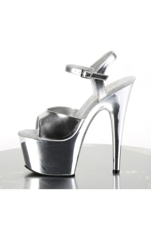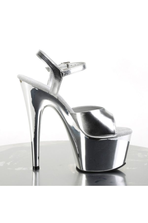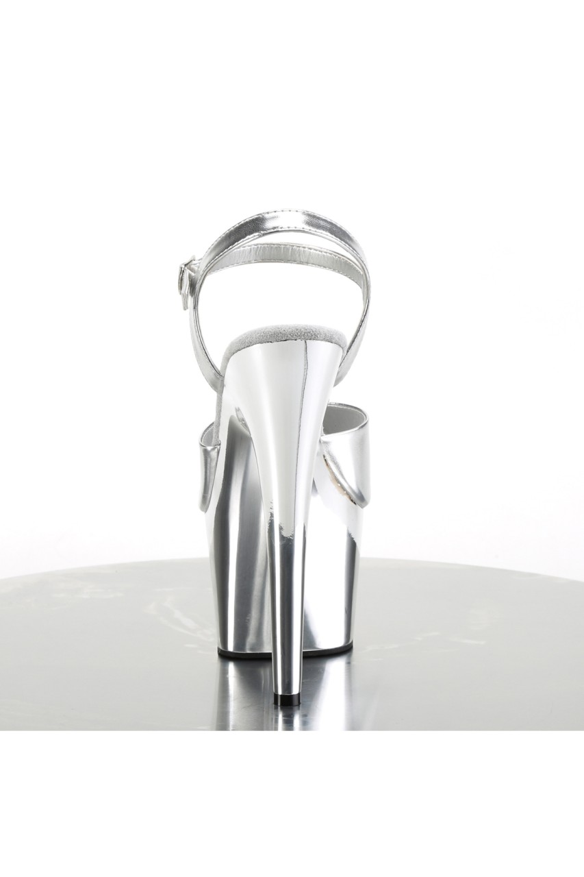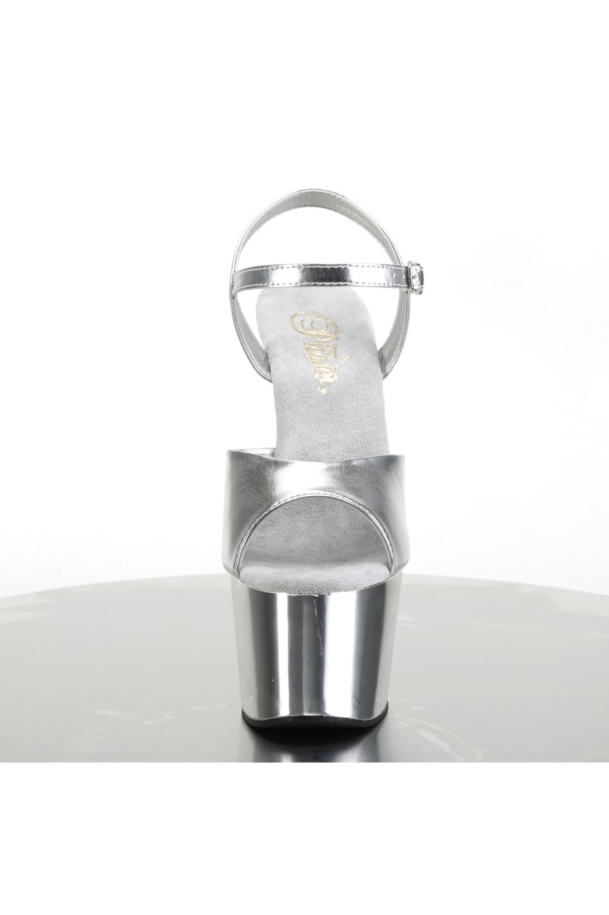 7″” (178mm) Heel, 2 3/4″” (70mm) Platform Ankle Strap Sandal w/ Chrome Plated Platform Bottom