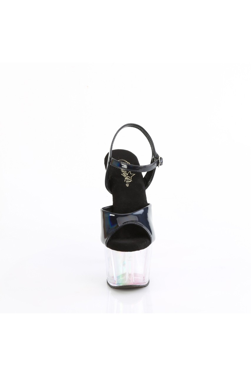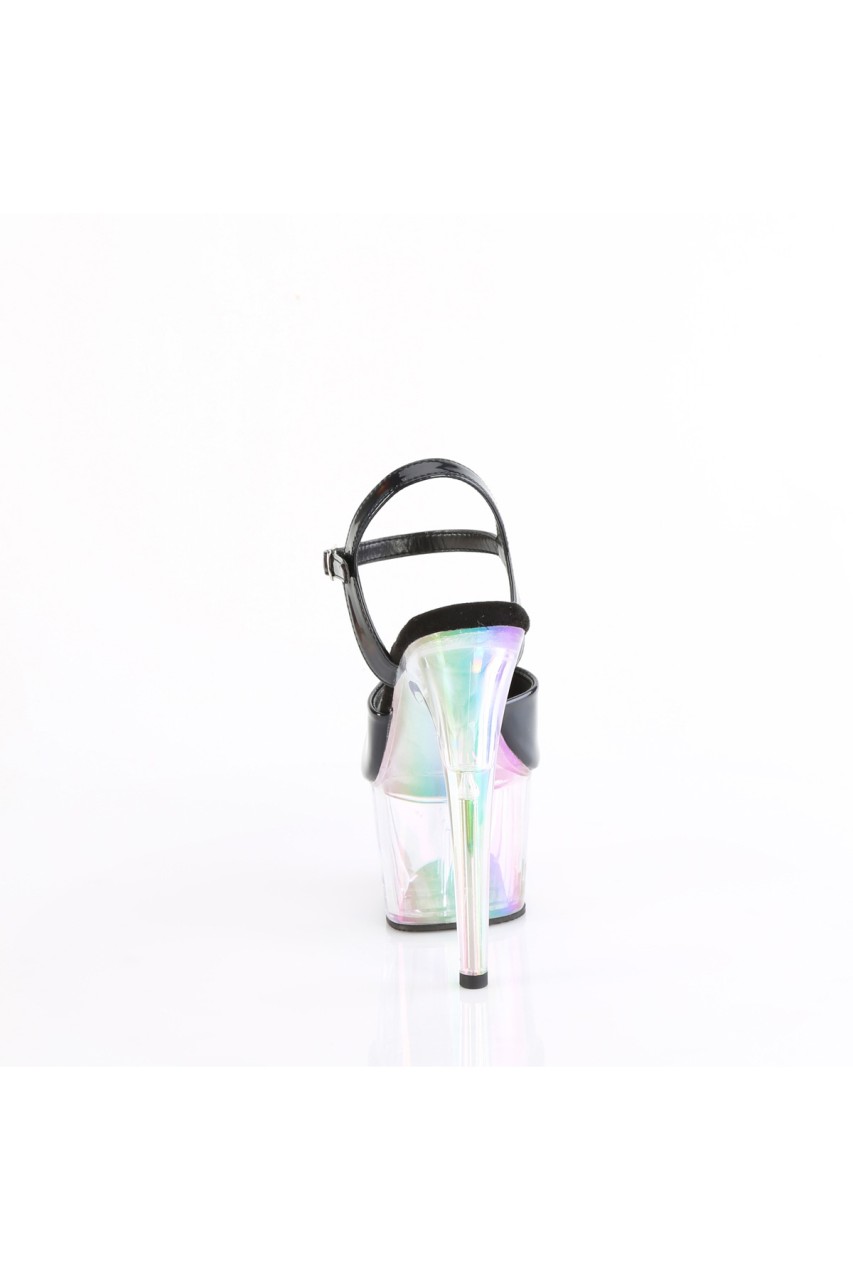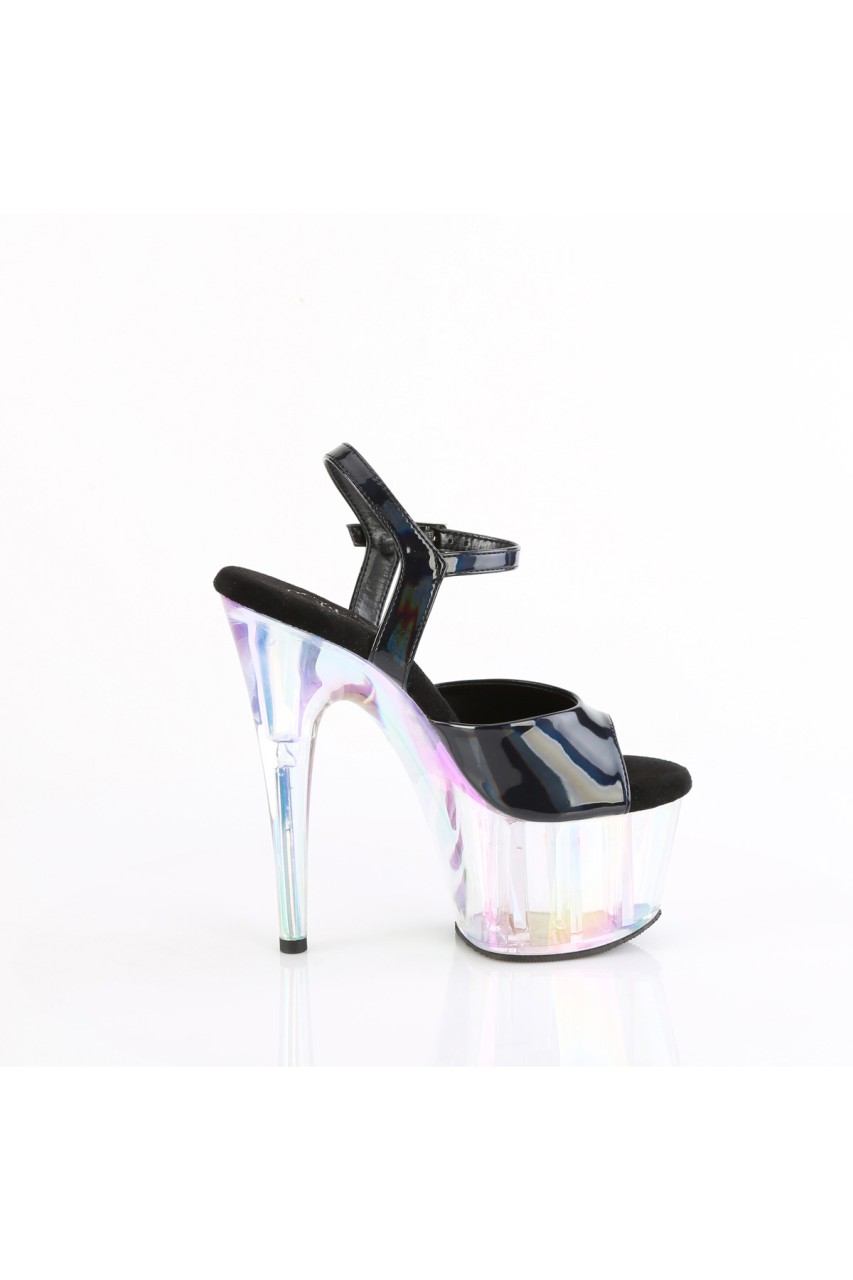 7″” (178mm) Heel, 2 3/4″” (70mm) Platform Ankle Strap Sandal Featuring Holographic Tinted Platform Bottom
