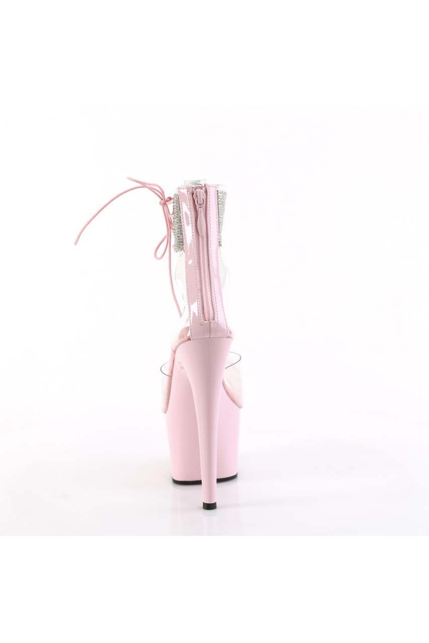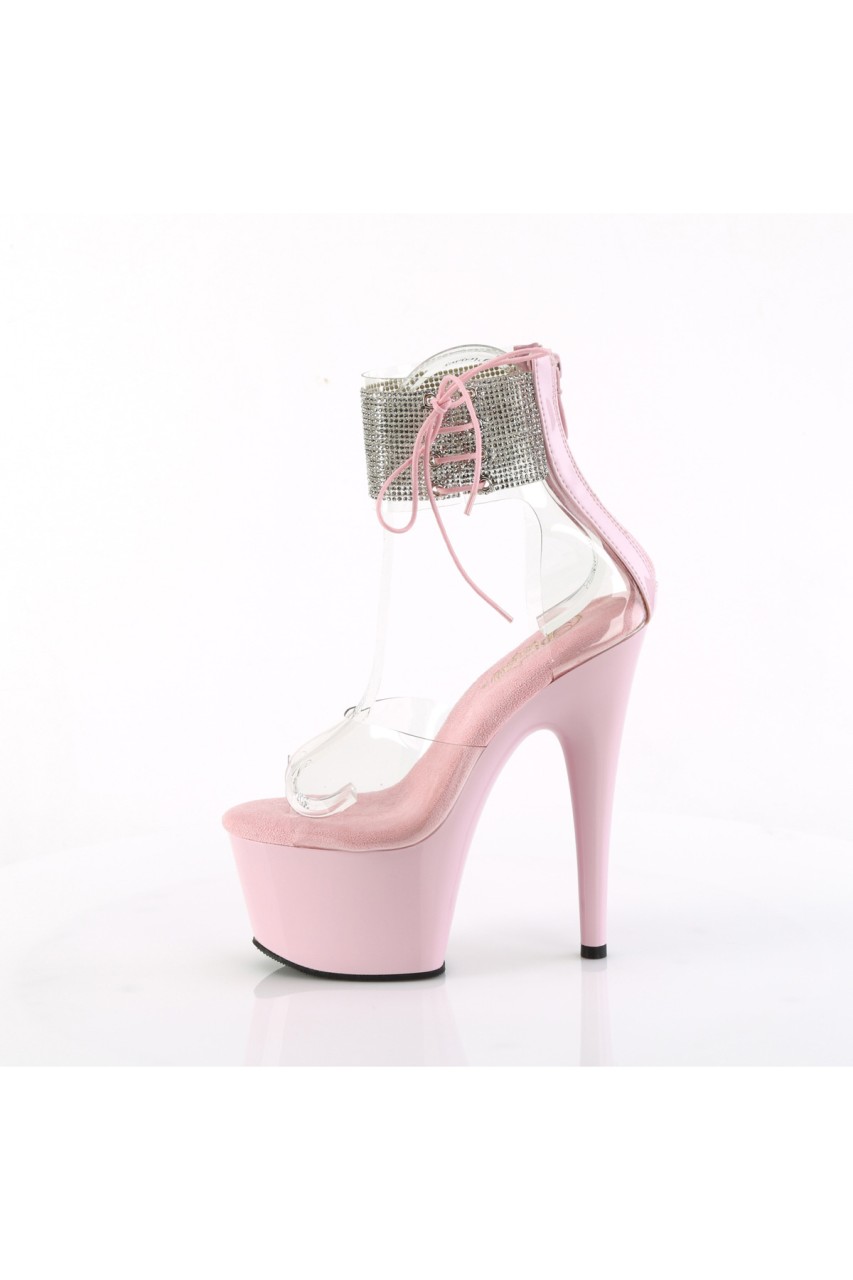 7″” (178mm) Heel, 2 3/4″” (70mm) Platform Close Back Rhinestone Embellished Ankle Cuff Sandal w/Side Lacing, Back Zip Closure