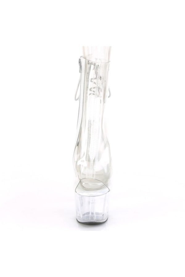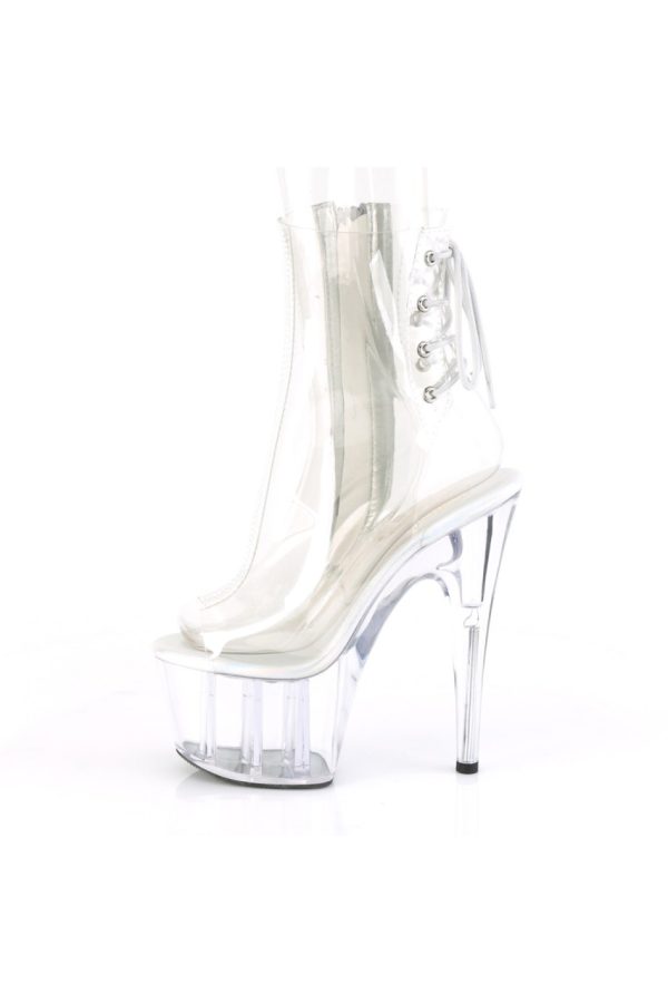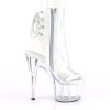 7″” (178mm) Heel, 2 3/4″” (70mm) Platform Open Toe/Heel Lace-Up Back Ankle Boot, Inner Side Zip Closure