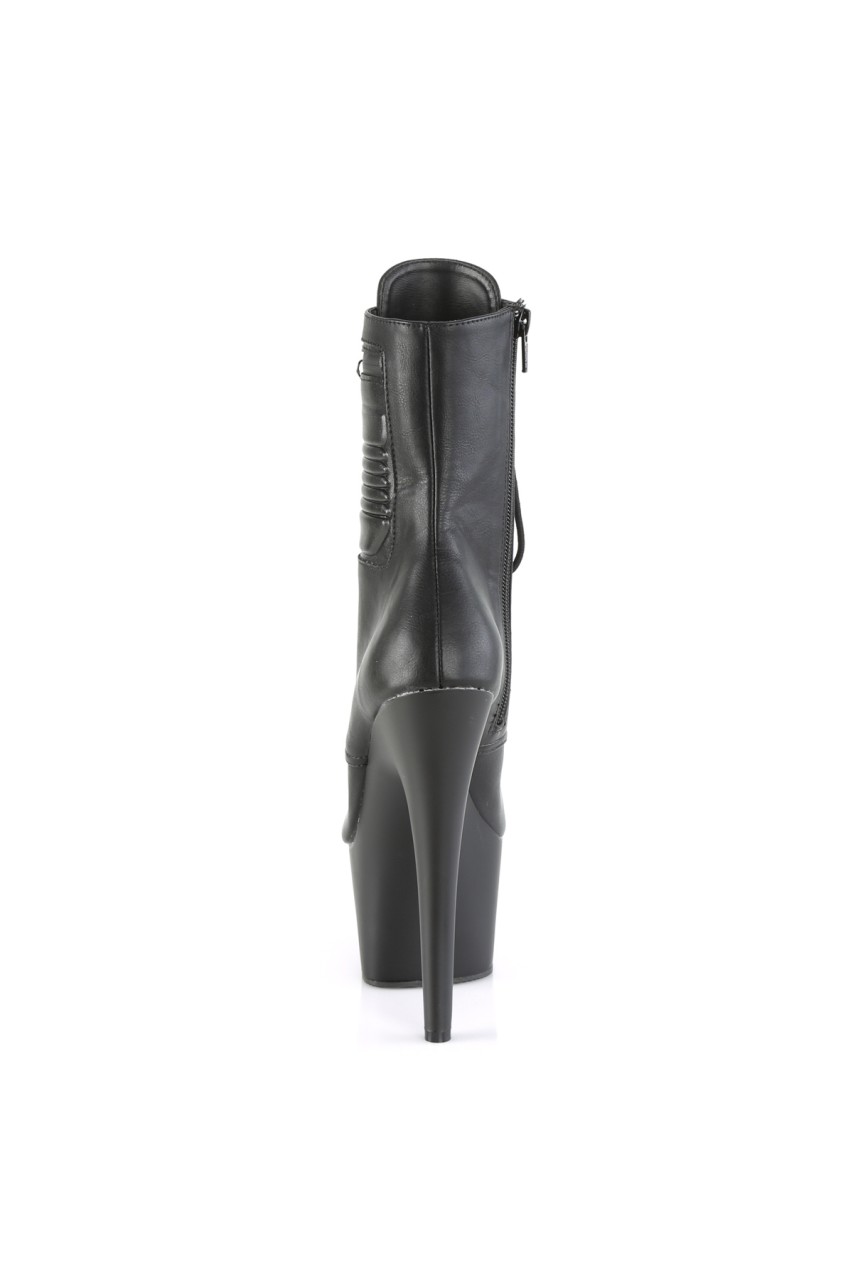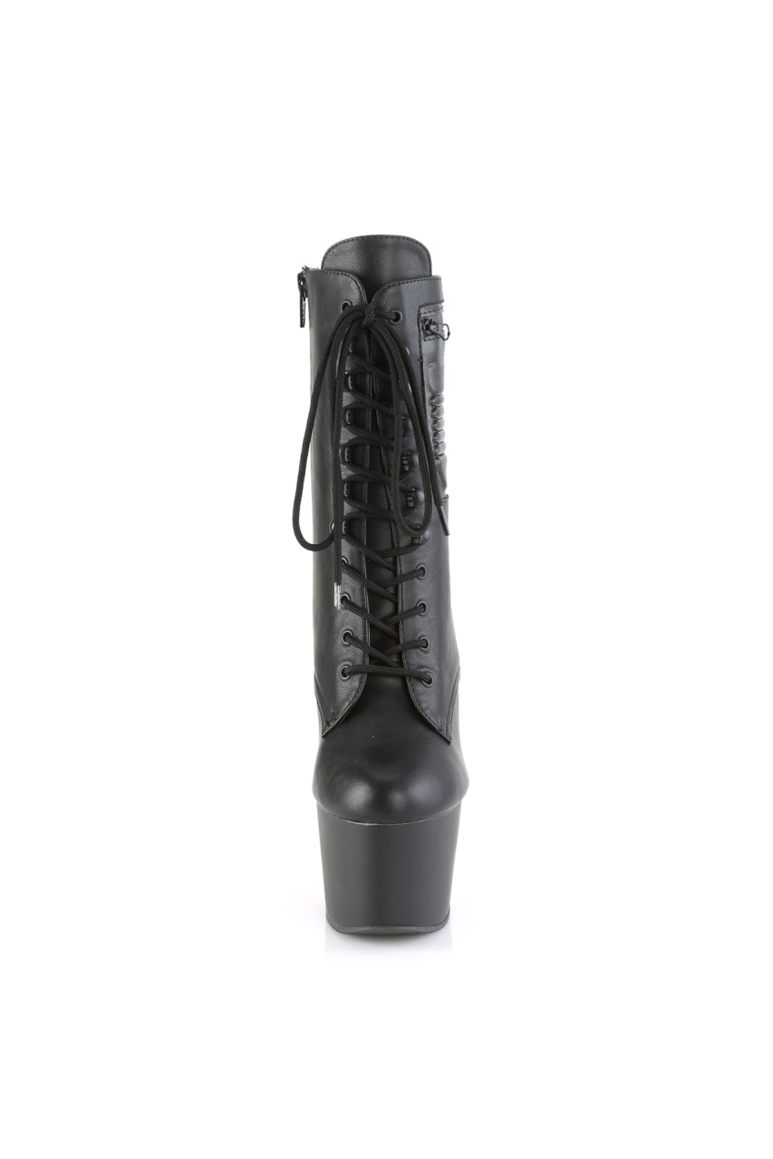 7″” (178mm) Heel, 2 3/4″” (70mm) Platform Lace-Up Front Ankle Boot w/ Outside Zip Closureed Pocket, Full Inner Side Zip Closure