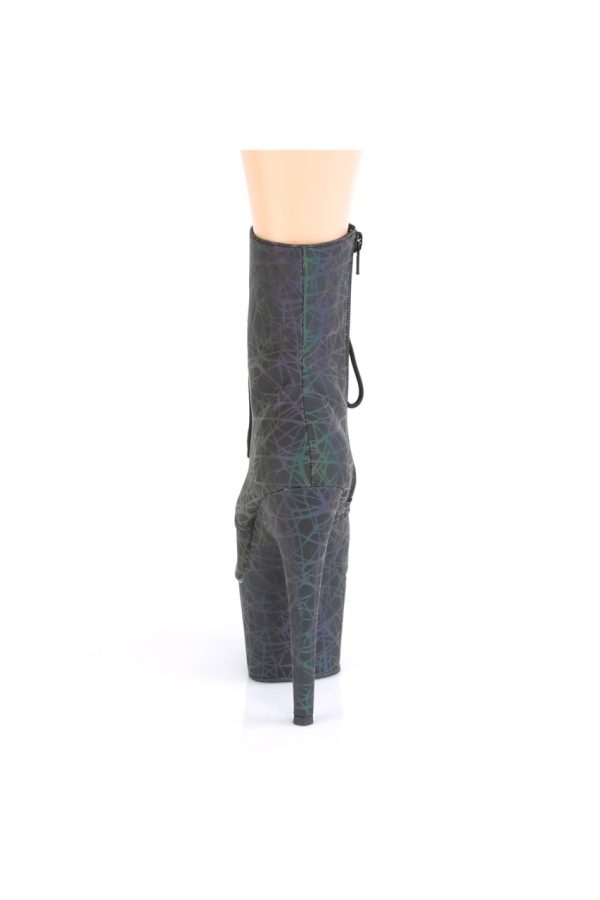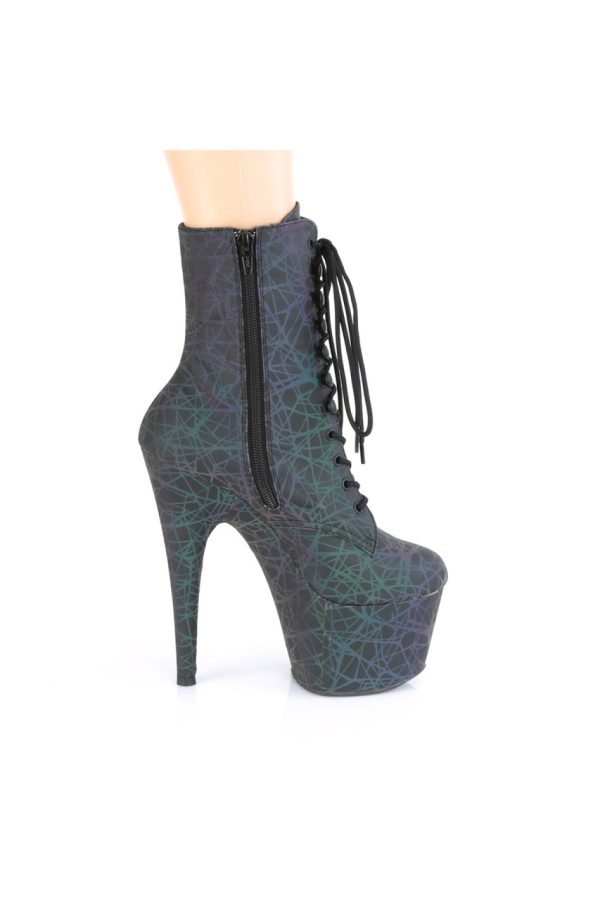 7″” (178mm) Heel, 2 3/4″” (70mm) Platform Lace-Up Front Ankle Boot Featuring Reflective Lines, Inner Side Zip Closure