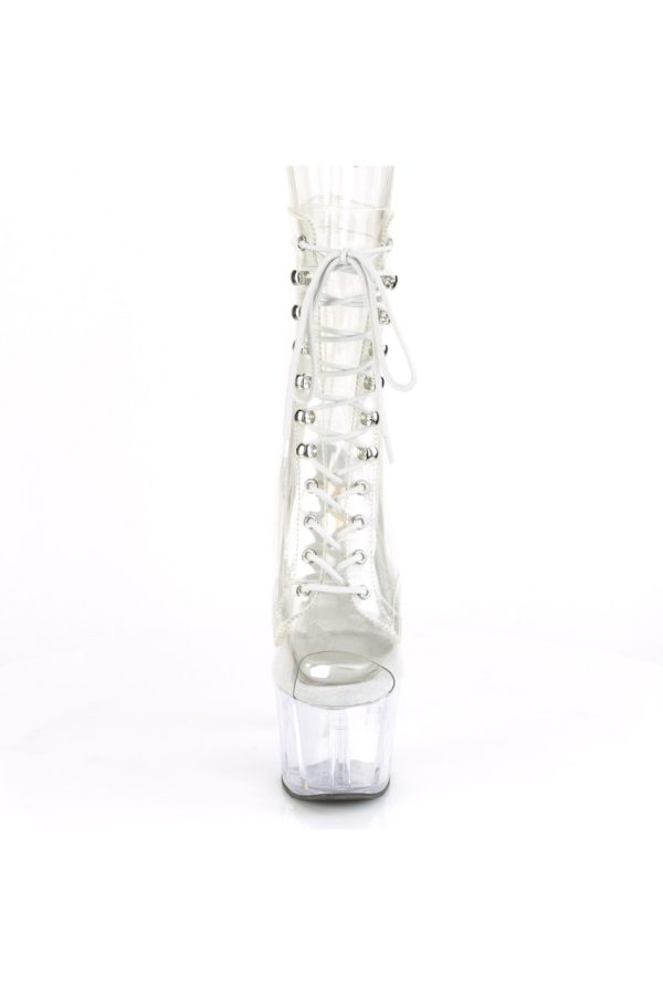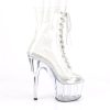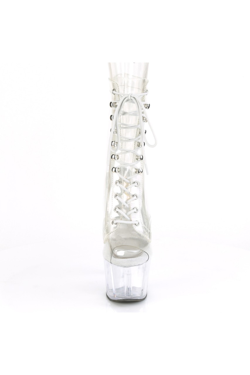 7″” (178mm) Heel, 2 3/4″” (70mm) Platform Peep Toe Lace-Up Front Ankle Boot, Inner Side Zip Closure