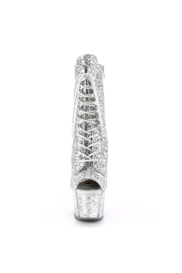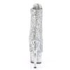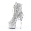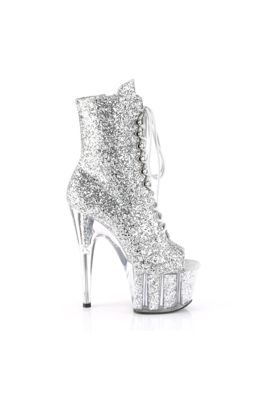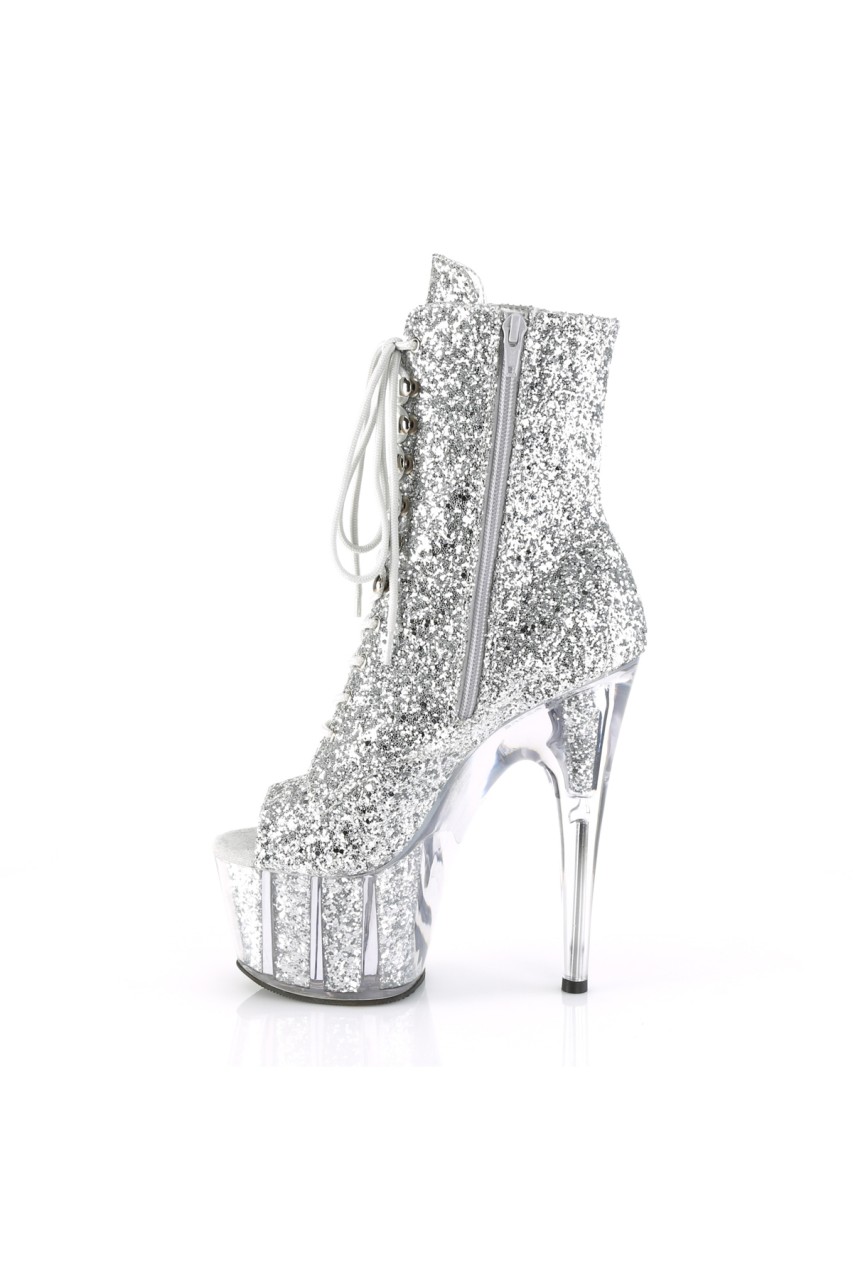 7″” (178mm) Heel, 2 3/4″” (70mm) Glitter Filled Platform Lace-Up Front Peep Toe Ankle Boot, Full Inner Side Zip Closure