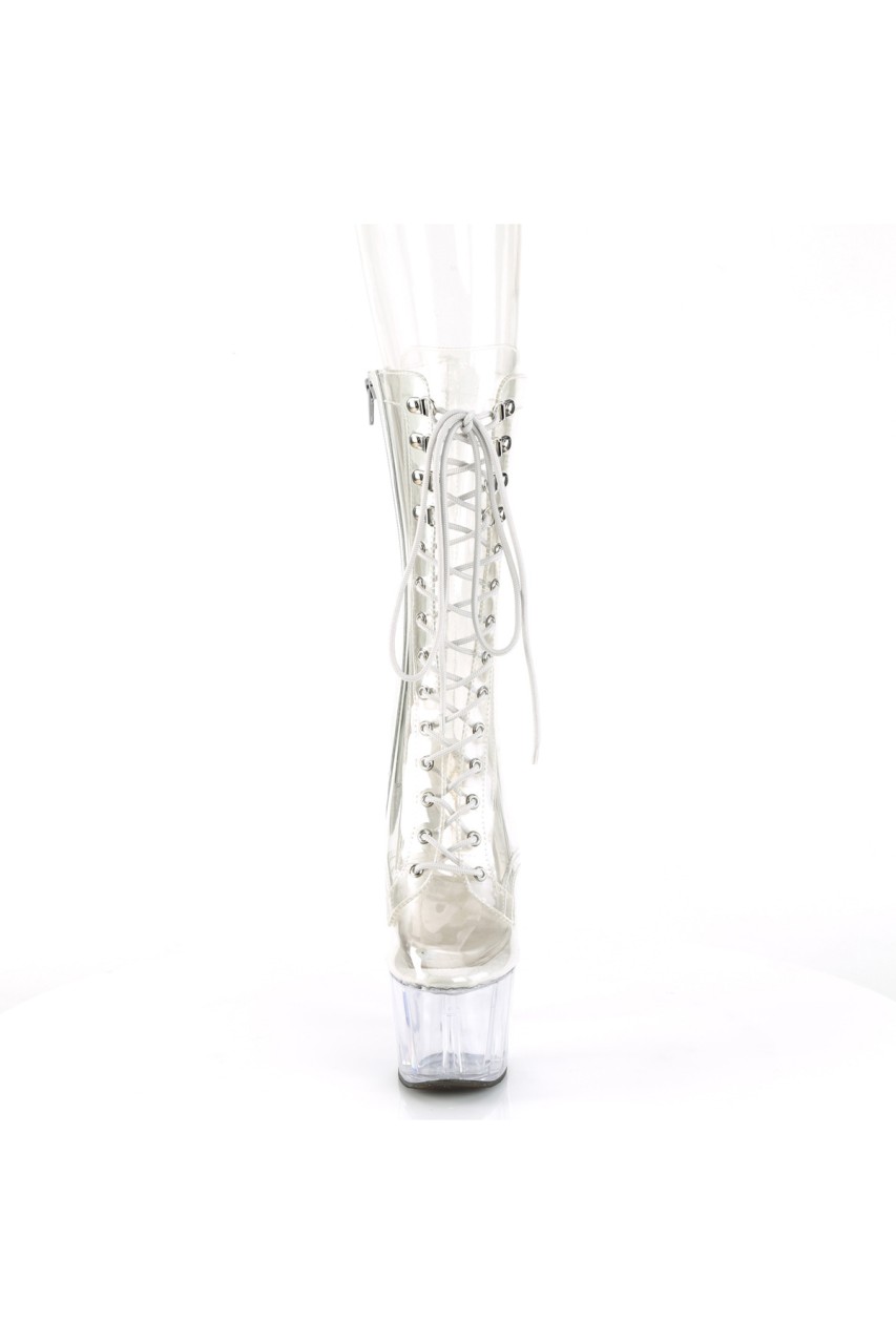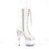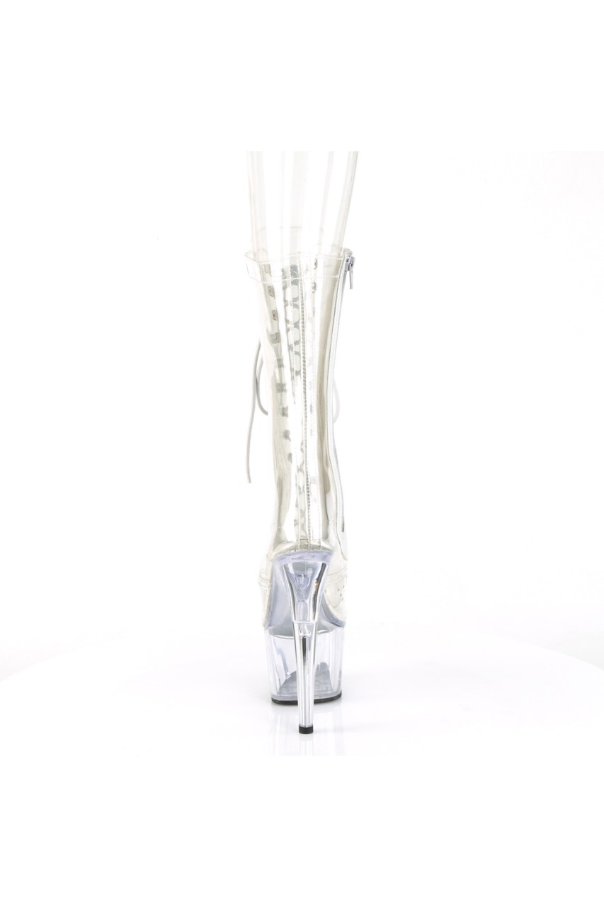 7″” (178mm) Heel. 2 3/4″” (70mm) Platform Lace-Up Front Mid Calf Boot, Inner Side Zip Closure
