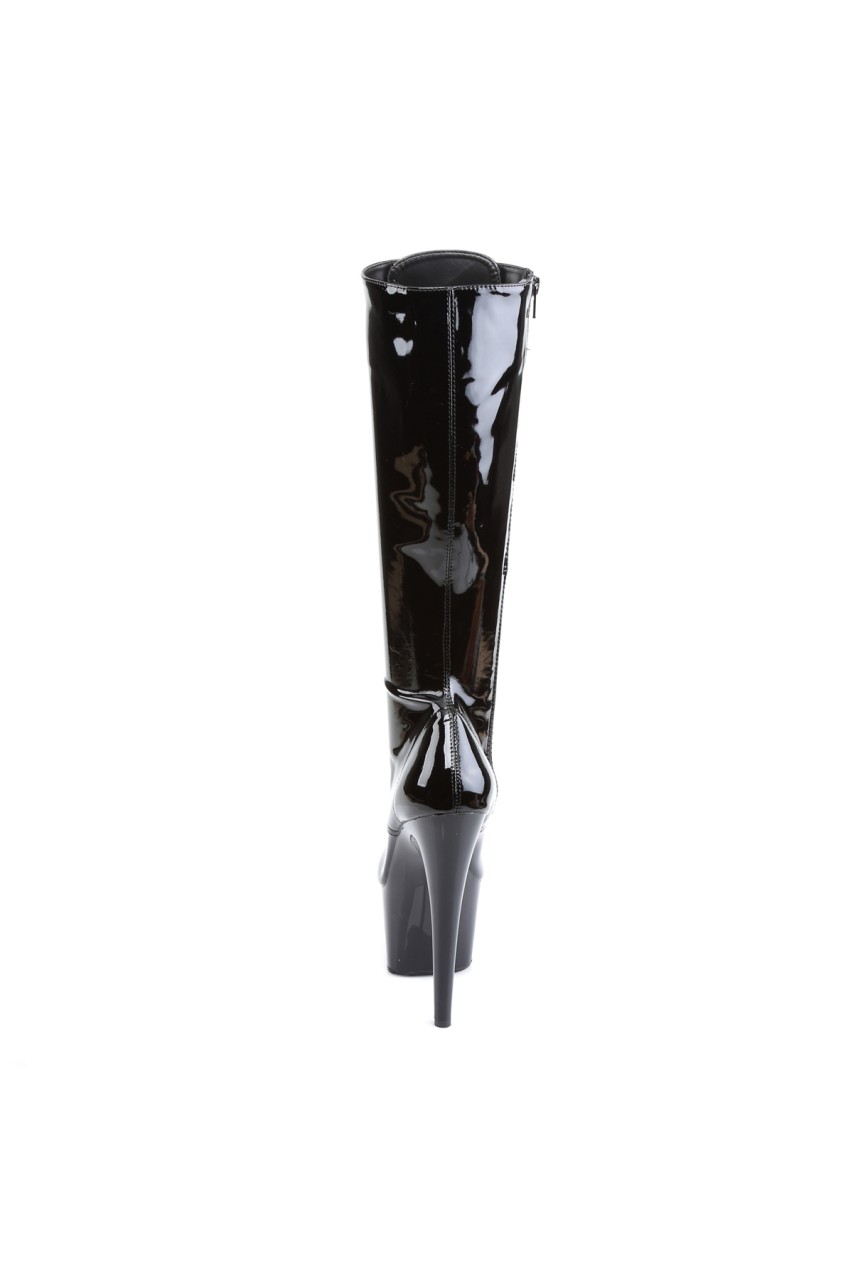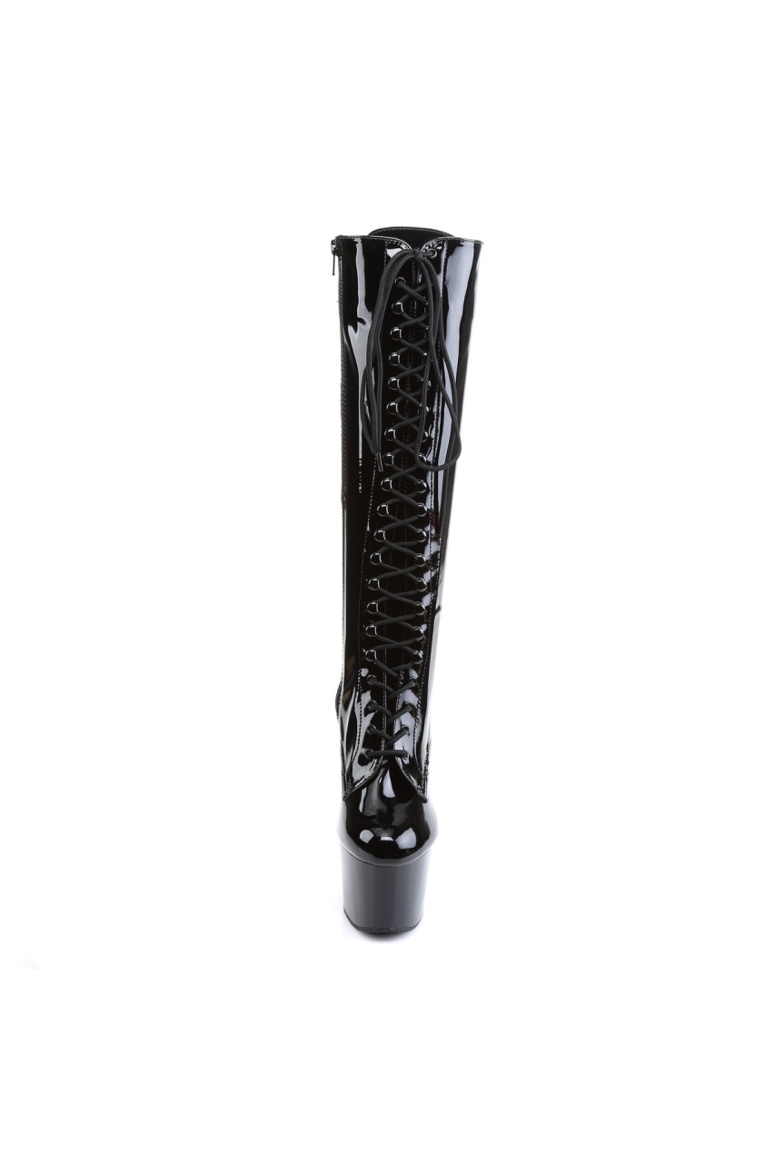 7″” (17.8cm) Stiletto Heel, 2 3/4″” (7cm) Platform Lace-Up Stretch Knee Boot, Full Inner Side Zip Closure