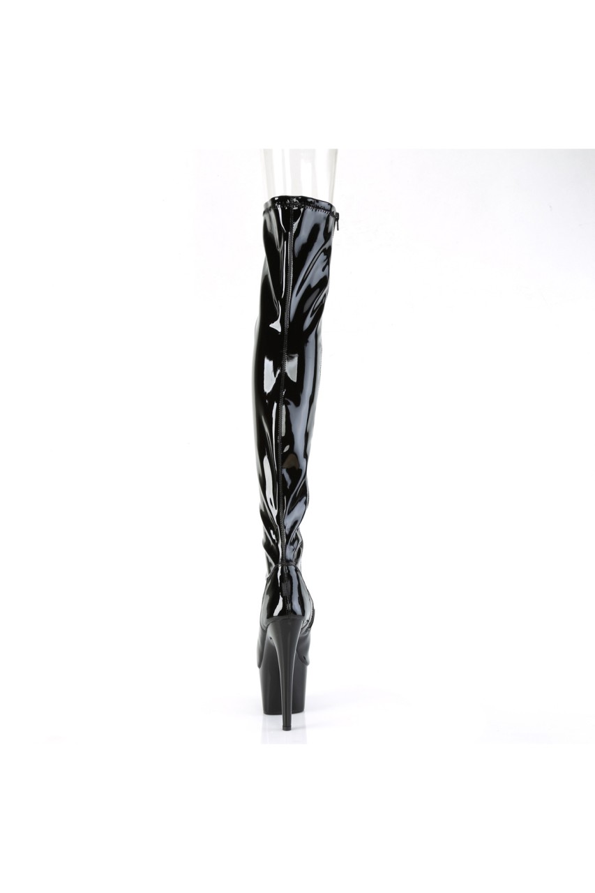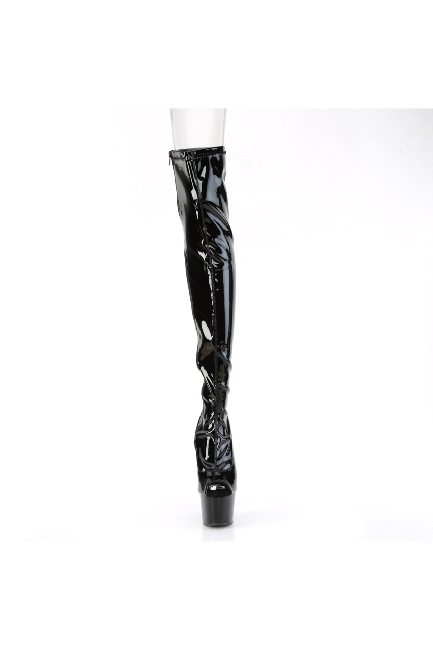 7″” (178mm) Heel, 2 3/4″” (70mm) Platform Peep Toe Stretch Thigh High Boot, Inner Side Zip Closure