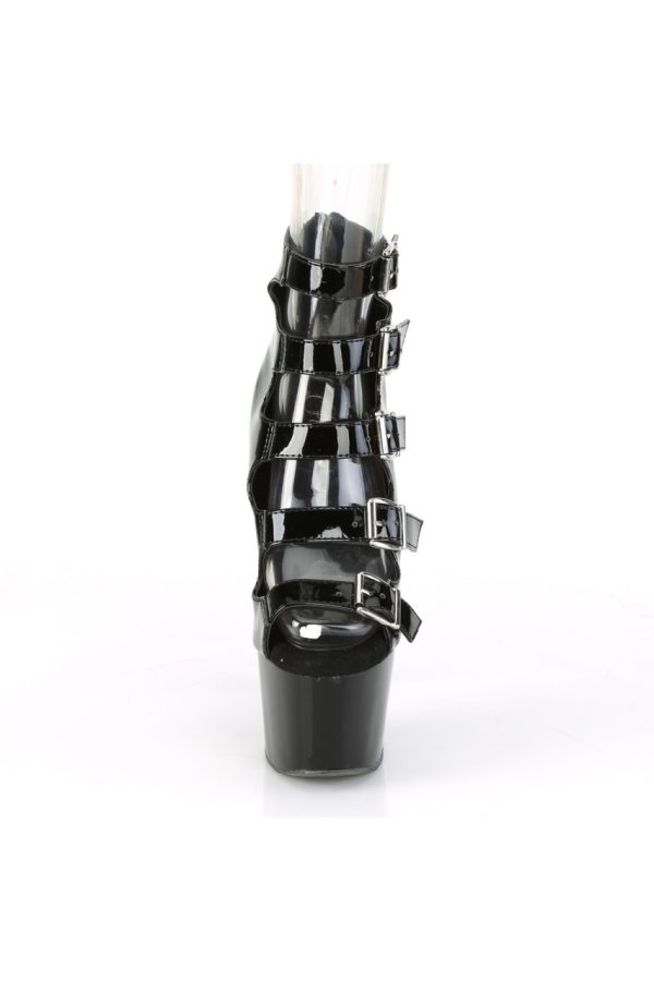 7″” (178mm) Heel, 2 3/4″” (70mm) Platform Open Toe Open Front Ankle Bootie Featuring Multiple Buckles, Back Zip Closure