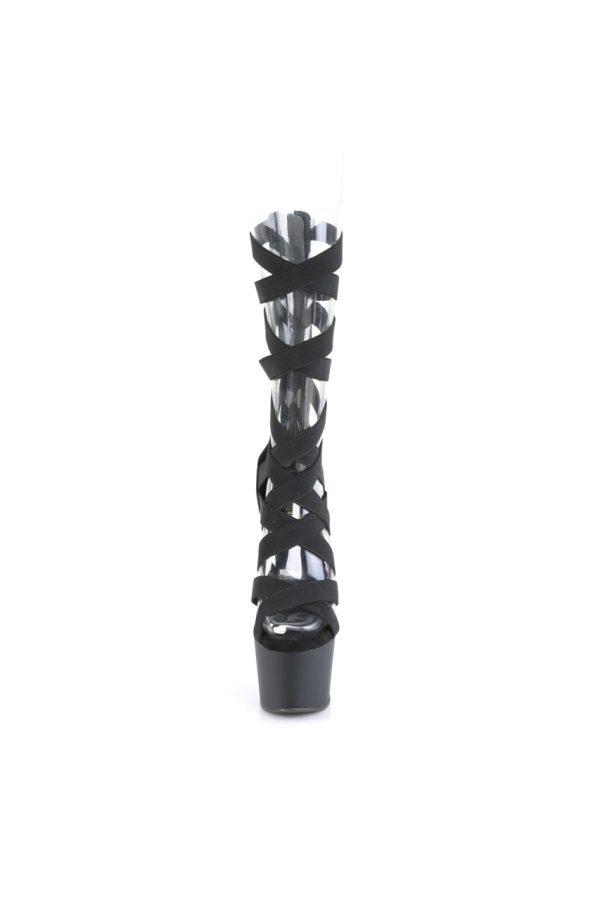 7″” (178mm) Heel, 2 3/4″” (70mm) Platform Close Back Criss Cross Mid-Calf Bootie Sandal with Elastic Straps, Back Zip Clousre