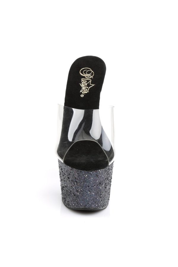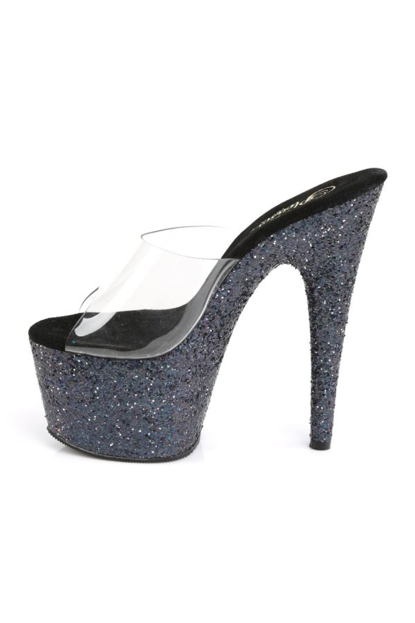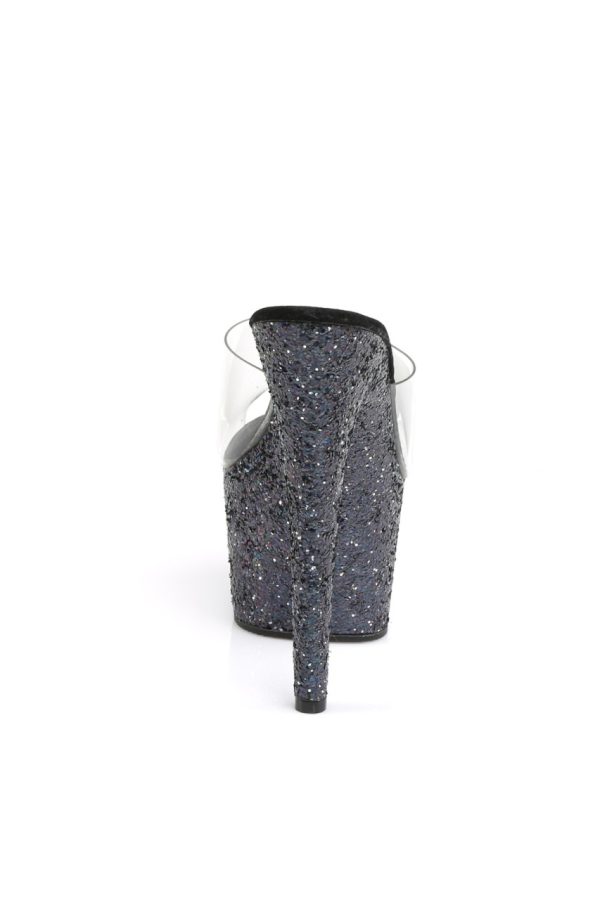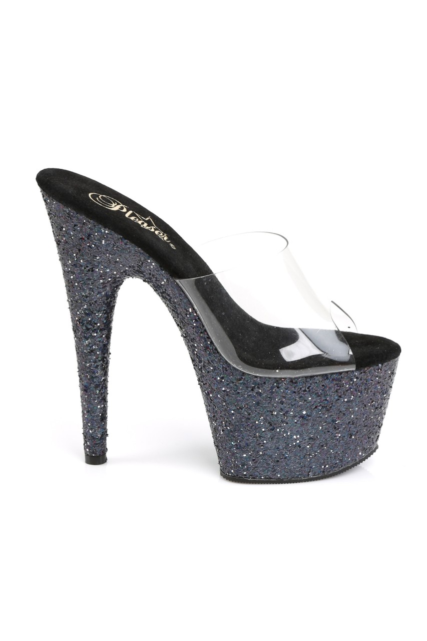 7″” (17.8cm) Stiletto Heel, 2 3/4″” (7cm) Platform Slide Featuring Holographic Glitter Covering Entire Platform