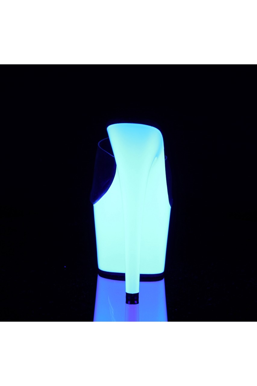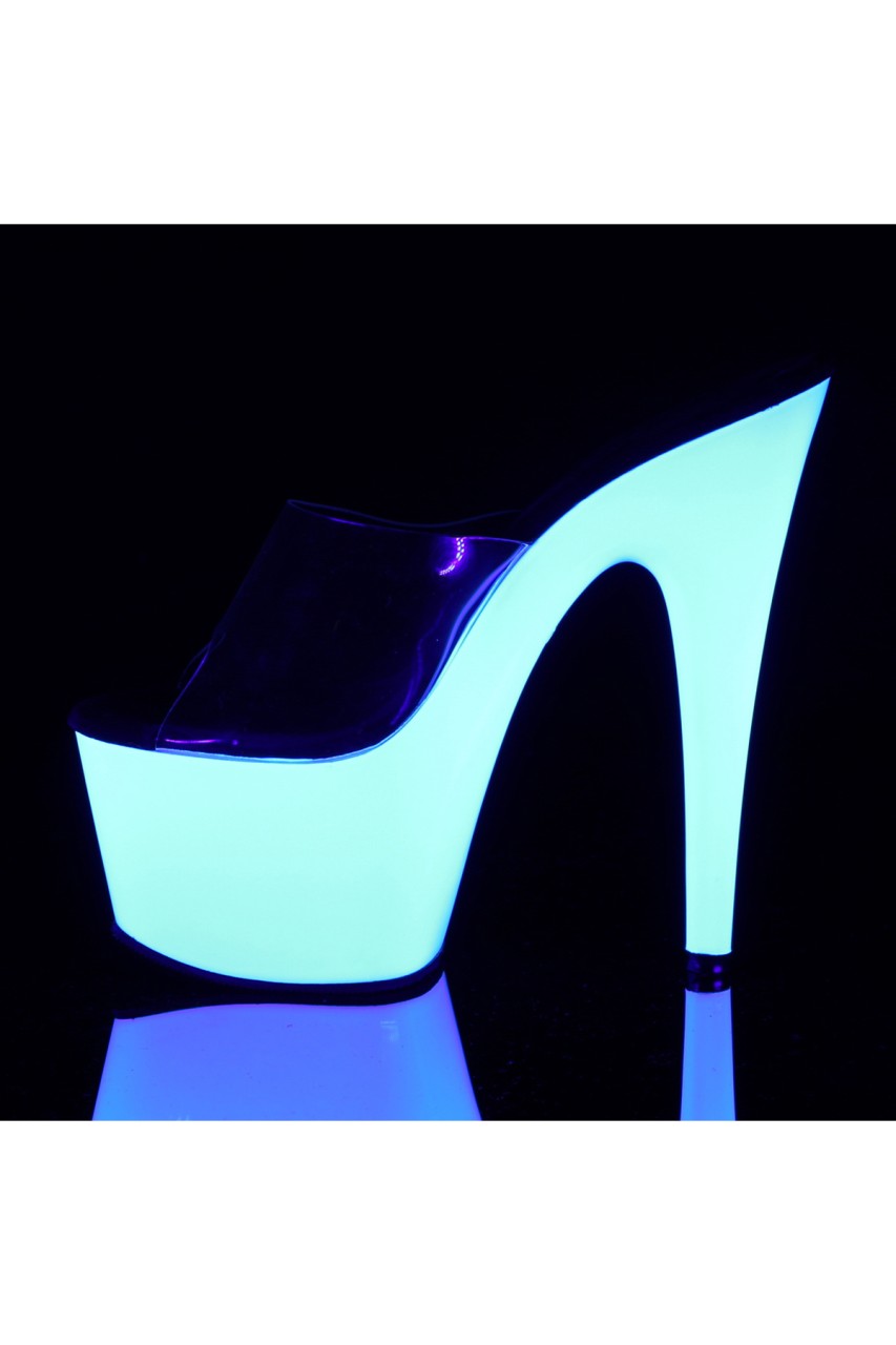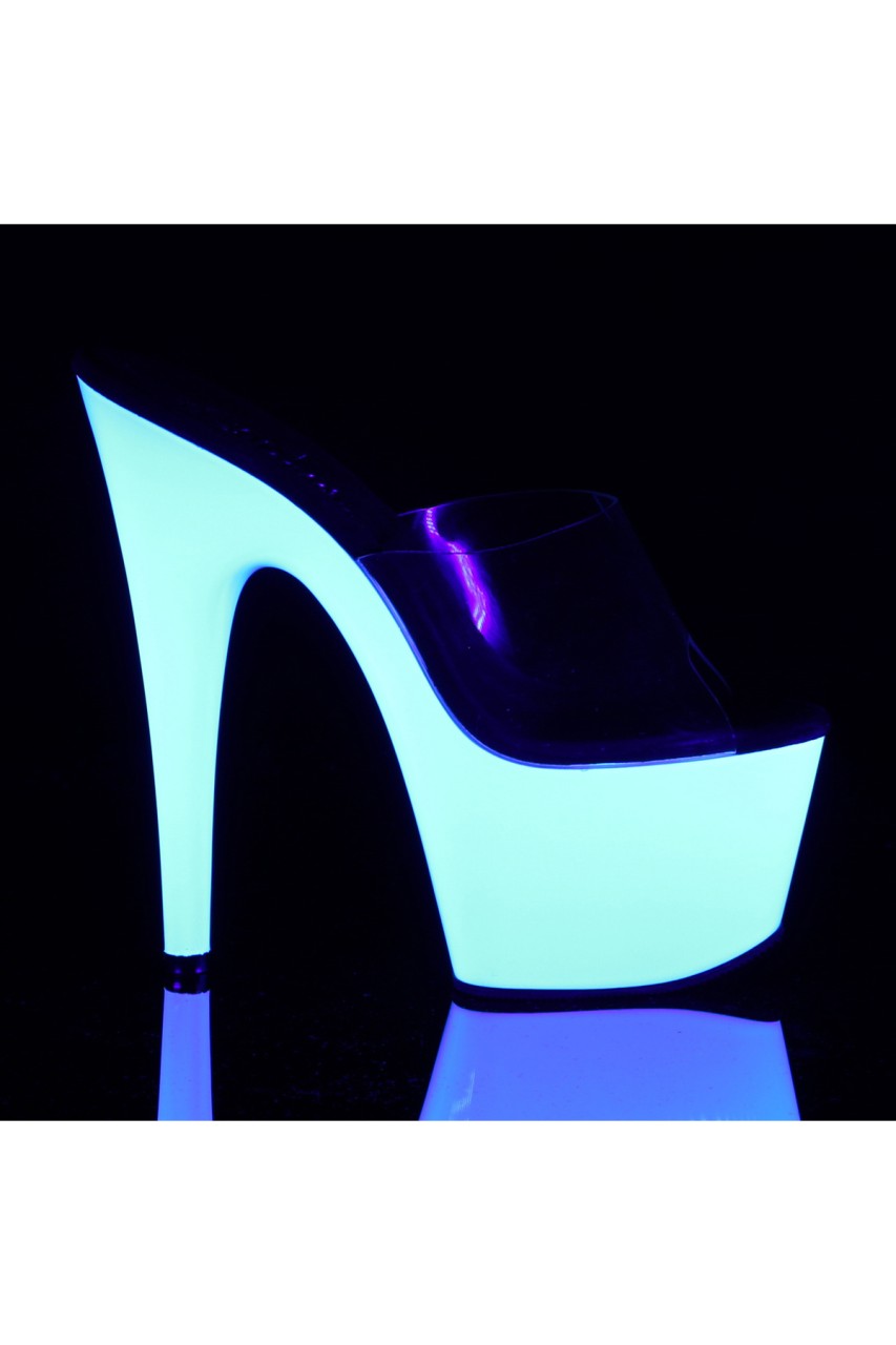 7″” (17.8cm) Stiletto Heel, 2 3/4″” (7cm) Platform Slide Featuring Entire Platform Neon UV Reactive