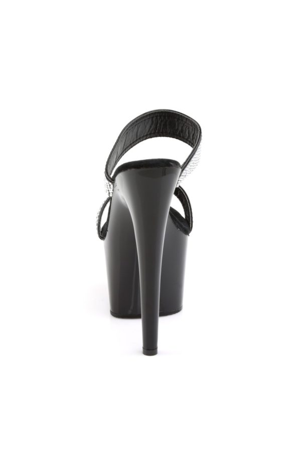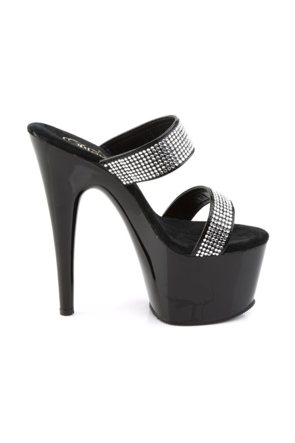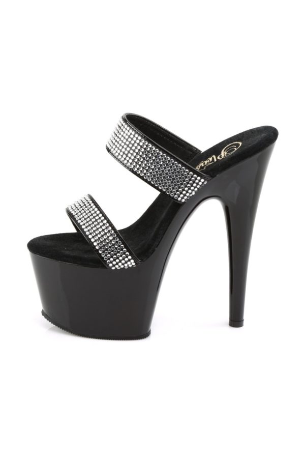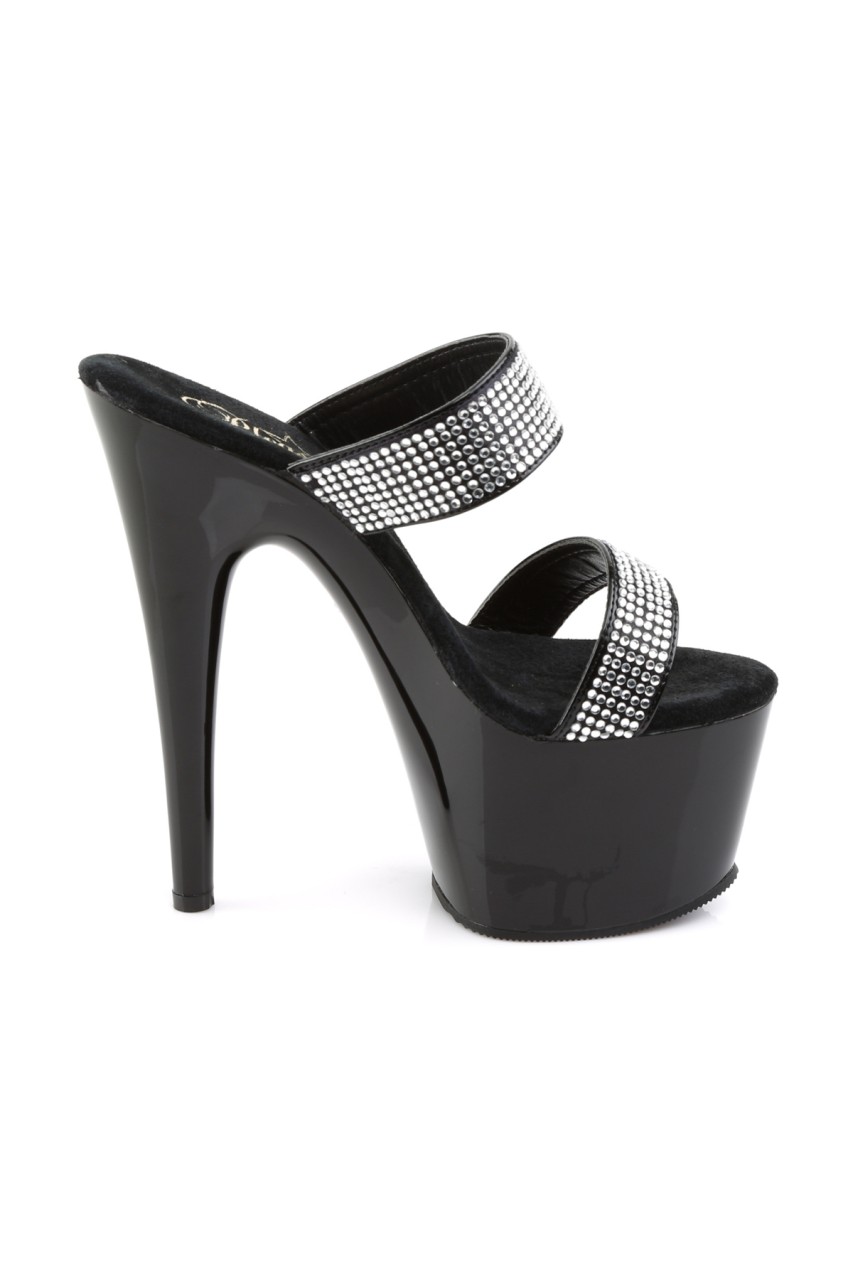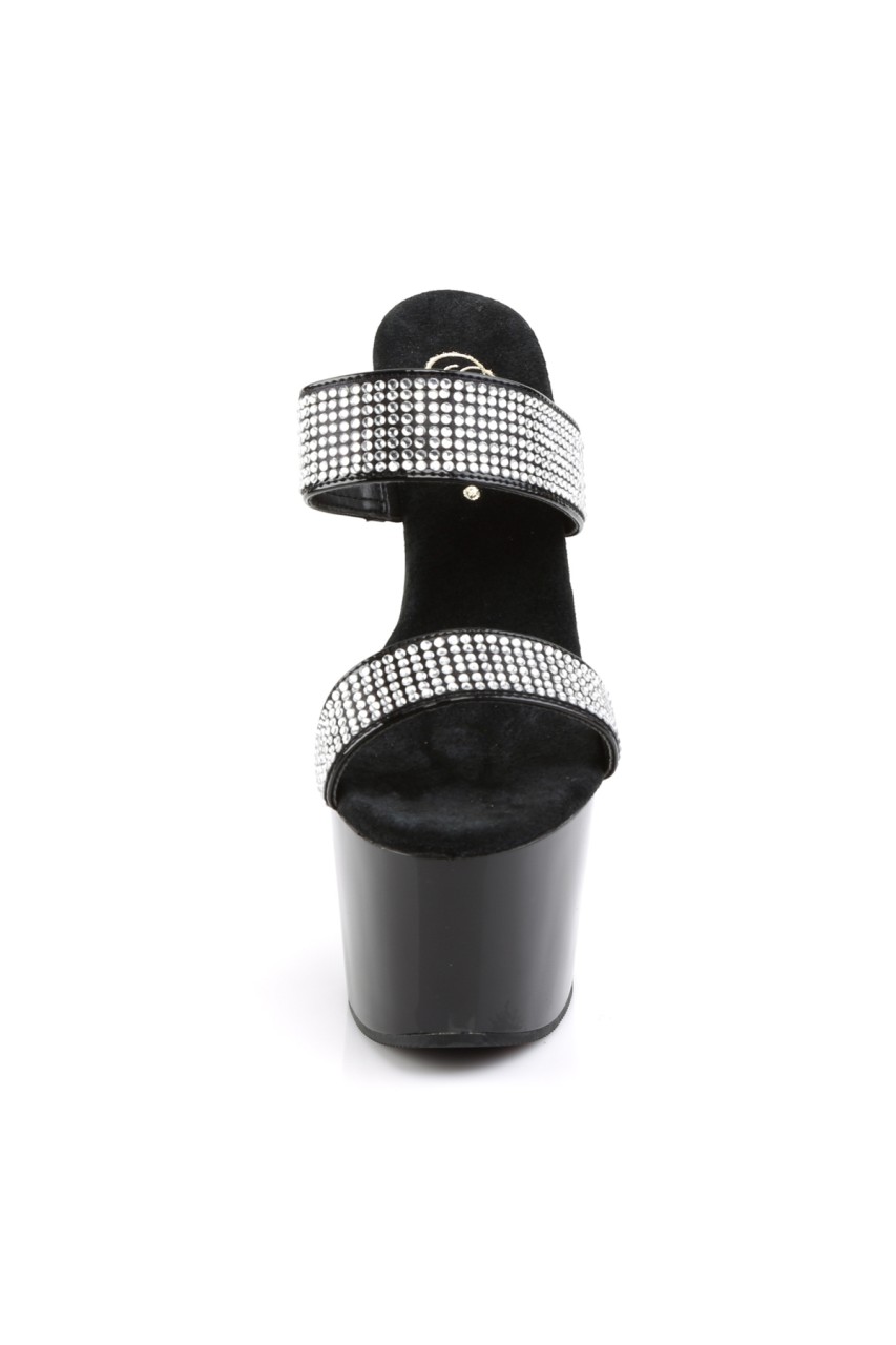 7″” (17.8cm) Stiletto Heel, 2 3/4″” (7cm) Platform Slide Featuring Rhinestone Encrusted Two-band Straps