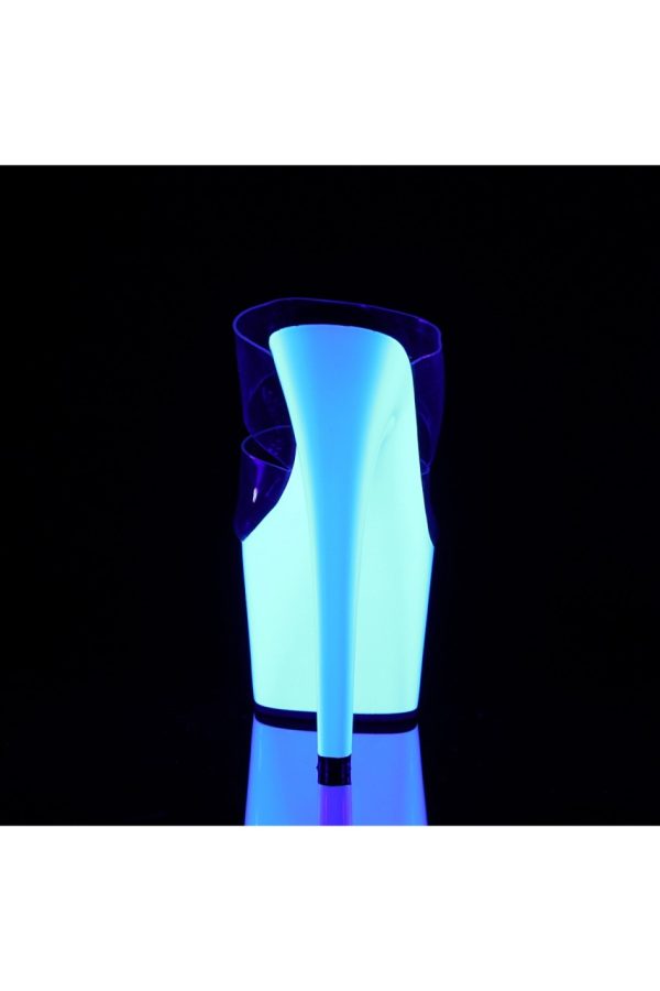 7″” (17.8cm) Stiletto Heel, 2 3/4″” (7cm) Platform Double Band Featuring UV Blacklight Reative Platform Bottom