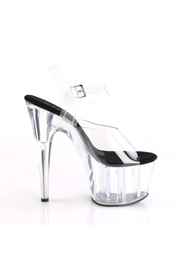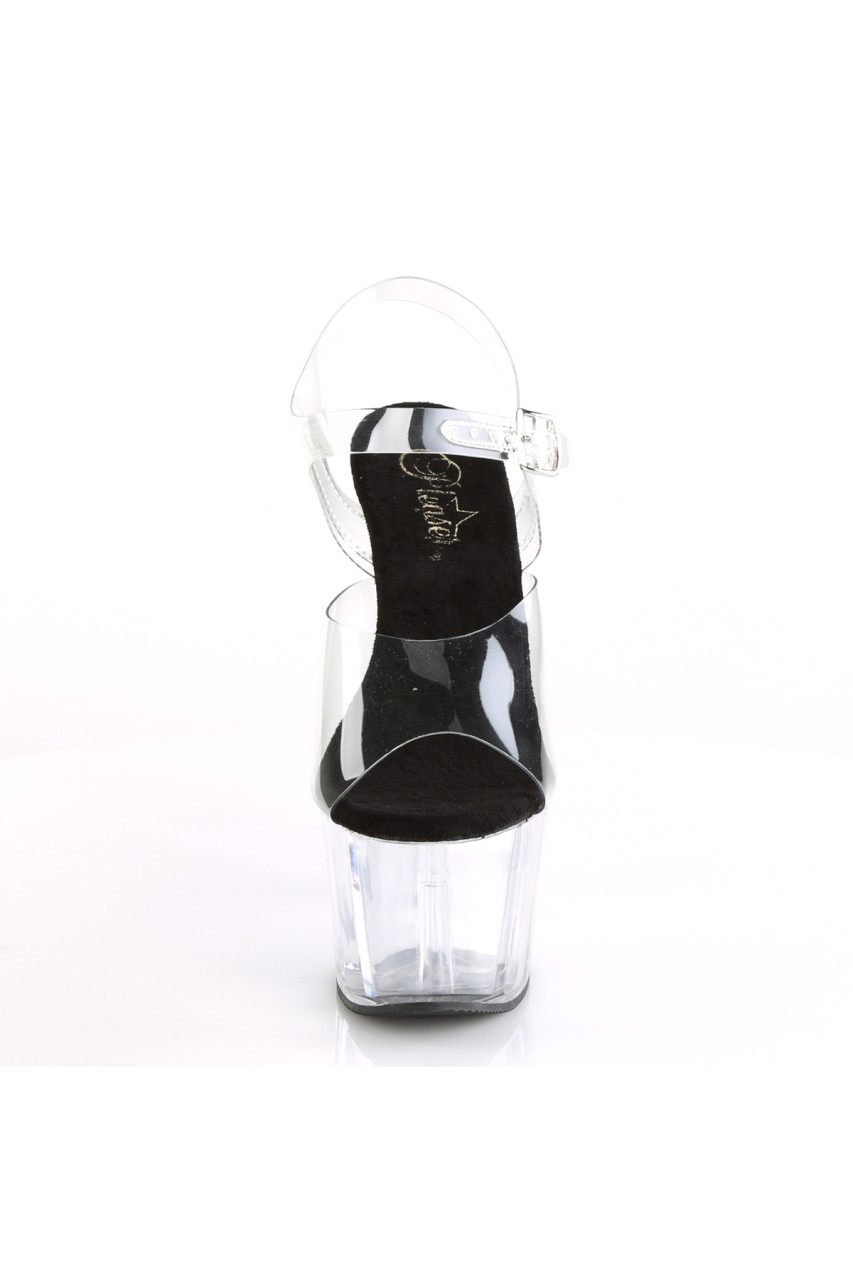 7″” (17.8cm) Stiletto Heel, 2 3/4″” (7cm) Platform Ankle Strap Sandal