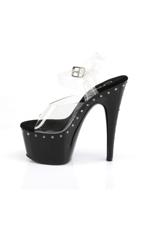 7″” (17.8cm) Stiletto Heel, 2 3/4″” (7cm) Platform Ankle Strap Sandal Featuring 1 Line Rhinestone on Platform & Heel