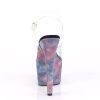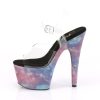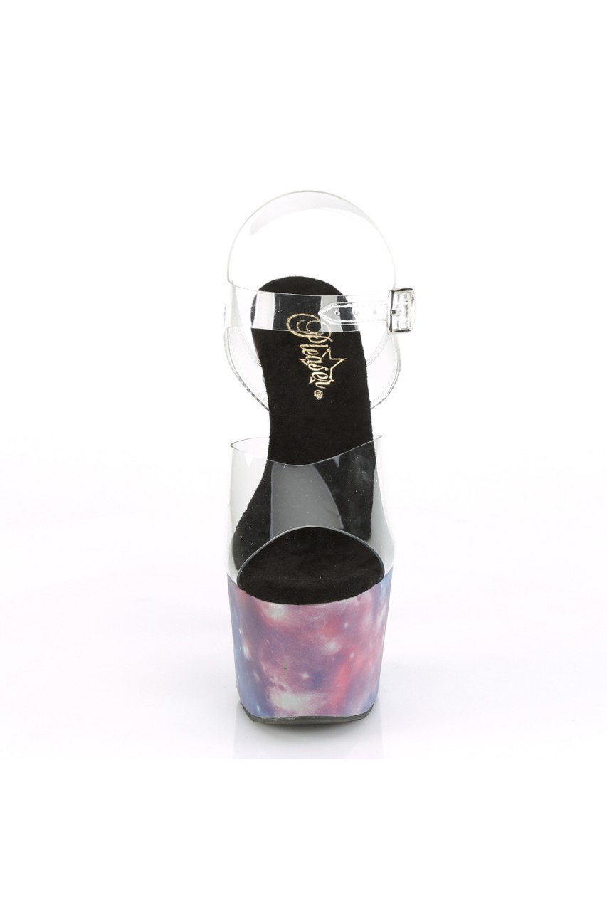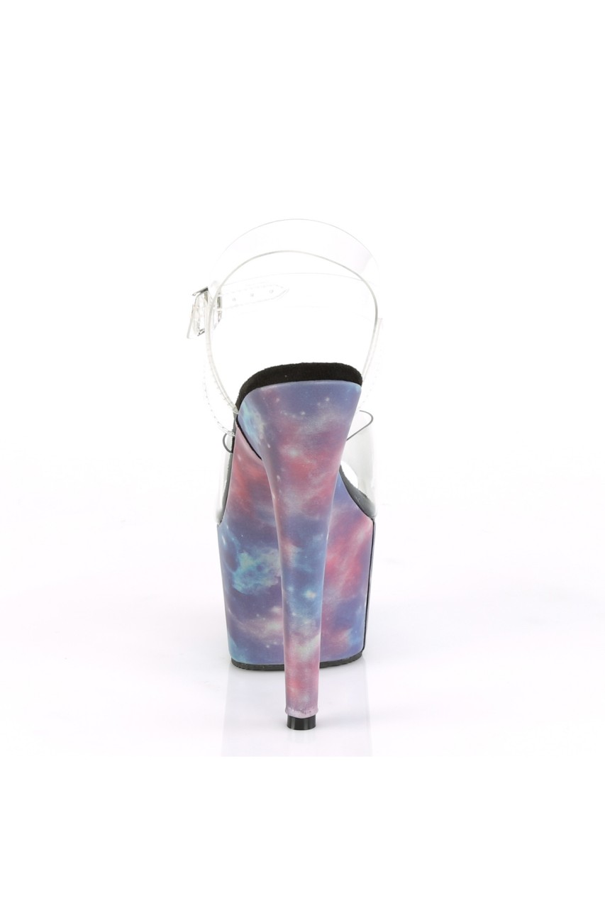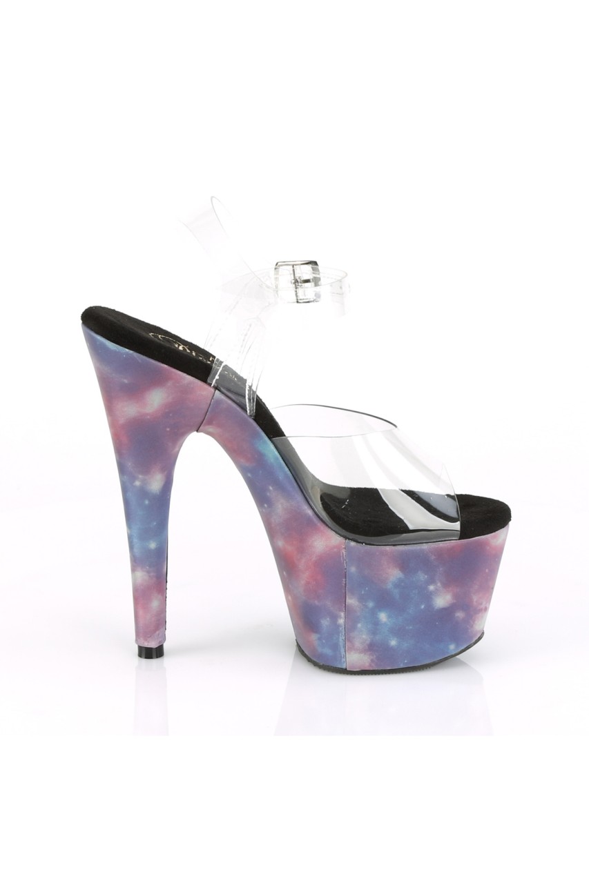 7″” (178mm) Heel, 2 3/4″” (70mm) Platform Ankle Strap Sandal Featuring Reflective Galaxy Effect Wrapped Platform Bottom