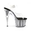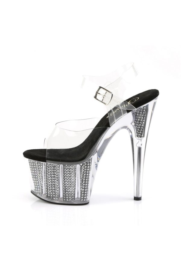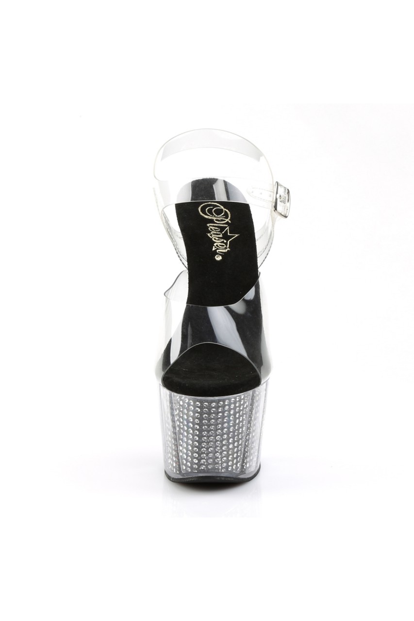 7″” (17.8cm) Stiletto Heel, 2 3/4″” (7cm) Platform Ankle Strap Sandal Featuring Simulated Rhinestone Filled Platform