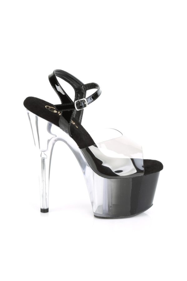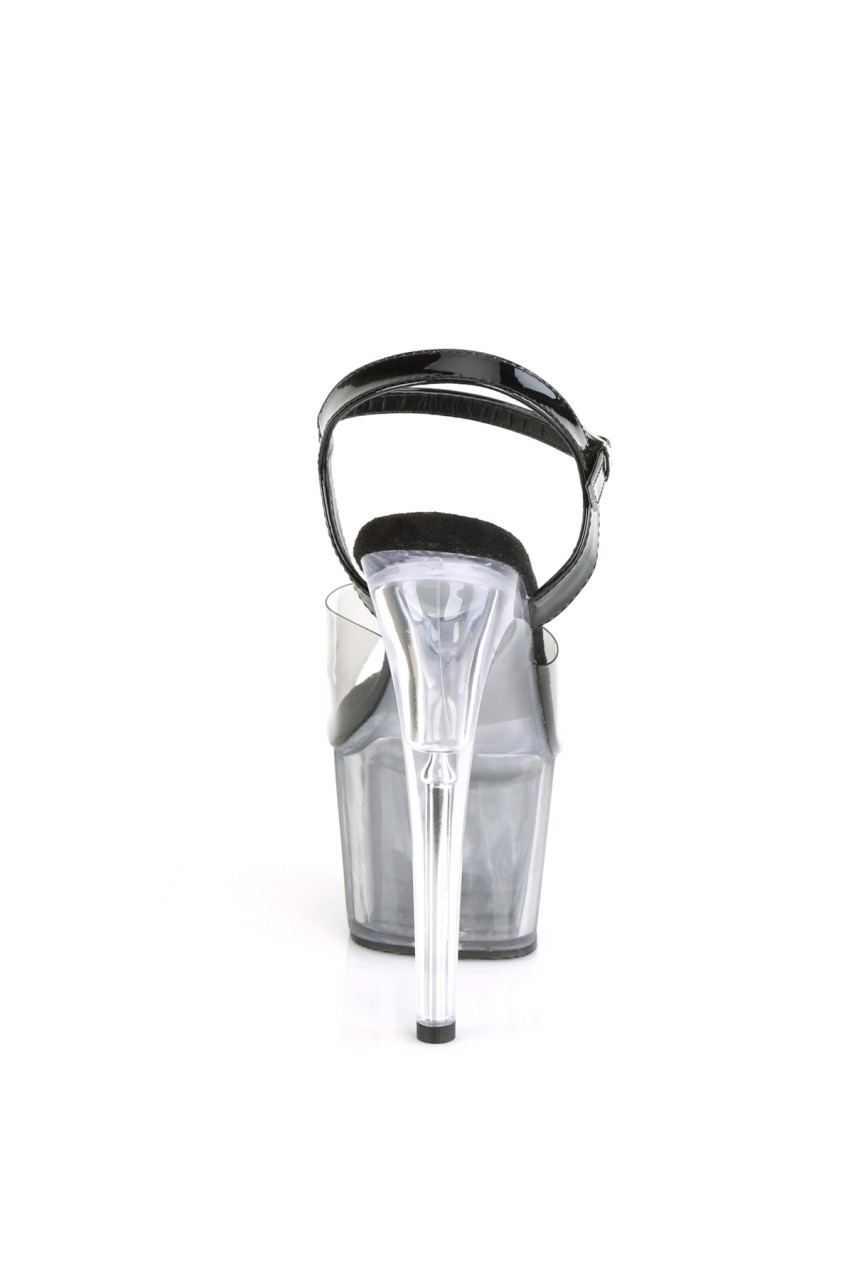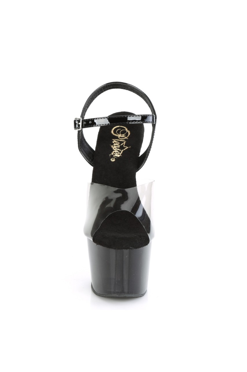 7″” (178mm) Heel, 2 3/4″” (70mm) Platform Ankle Strap Sandal Featuring Clear/Black Ombre Platform Bottom