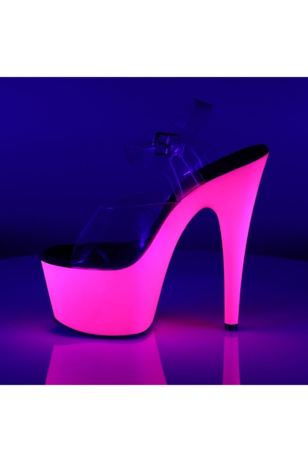 7″” (17.8cm) Stiletto Heel, 2 3/4″” (7cm) Platform Ankle Strap Neon Bottom Sandal