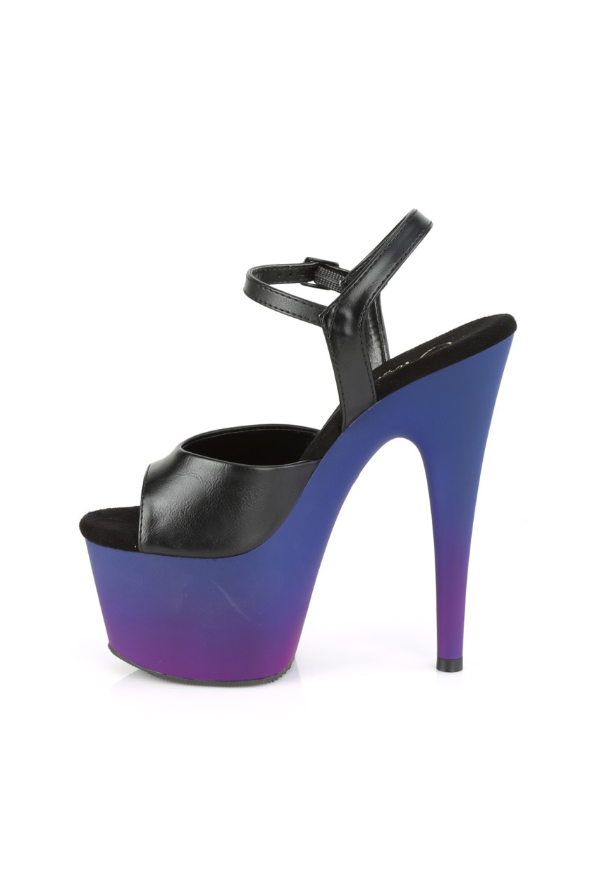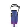 7″” (178mm) Heel, 2 3/4″” (70mm) Platform Ankle Strap Sandal Featuring Blue Purple Ombre Platform Bottom