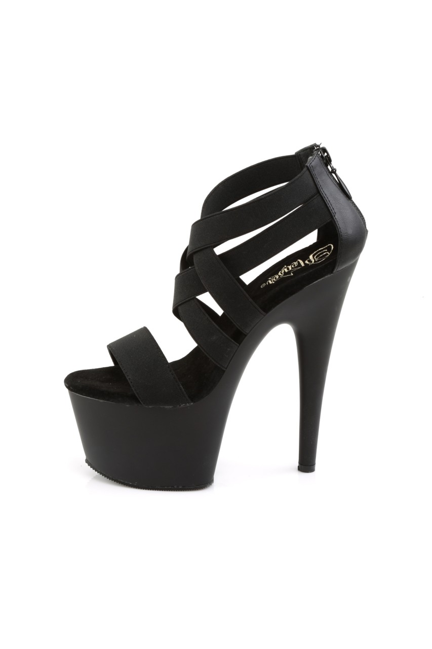 7″” (17.8cm) Stiletto Heel, 2 3/4″” (7cm) Platform Criss Cross Close Back Sandal, Back Zip