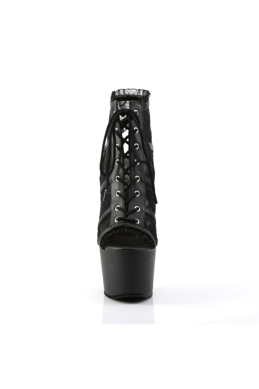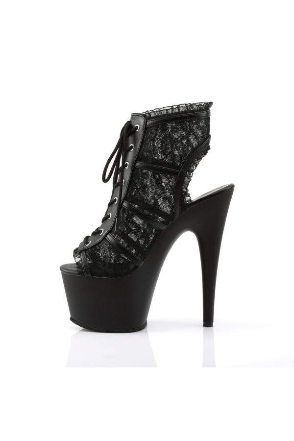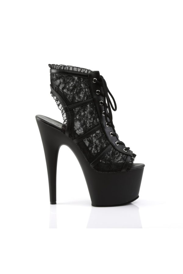 7″” (17.8cm) Stiletto Heel, 2 3/4″” (7cm) Platform Open Toe/Stiletto Heel Bootie Featuring Mesh Lace Overlay & Lace Trim Detail