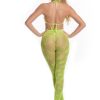 Very daring bra and open string set designed to flatter the lines of the figure and leave nothing to the imagination! Made with elastic straps and decorated in bows adorned with beautiful rhinestones. Garter included. Gloves not included. This item arrives packed in a Provocative box.