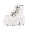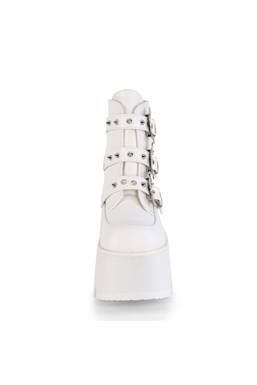3 1/2″” (90mm) Chunky Heel 2 1/4″” (57mm) Cut Out Platform Ankle Boot Featuring 3 Studded Bat Buckle Straps