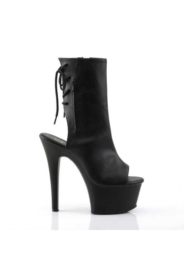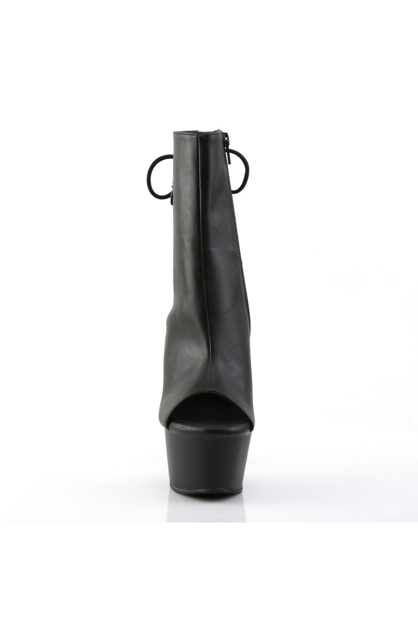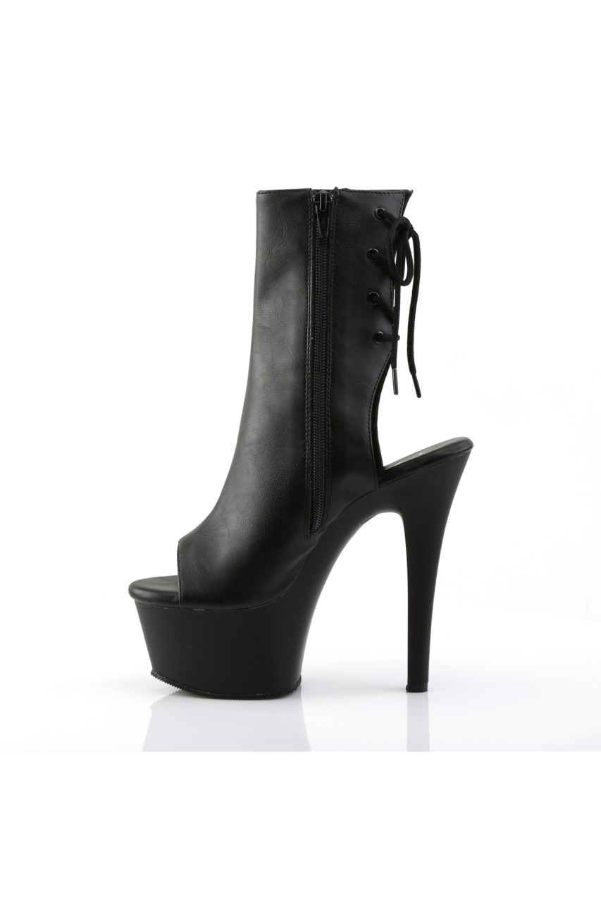6″” (15.2cm) Heel, 2 1/4″” (5.7cm) Platform Open Toe/Heel Lace-Up Back Ankle Boot with Hidden Zip Pocket, Inner Side Zip Closure