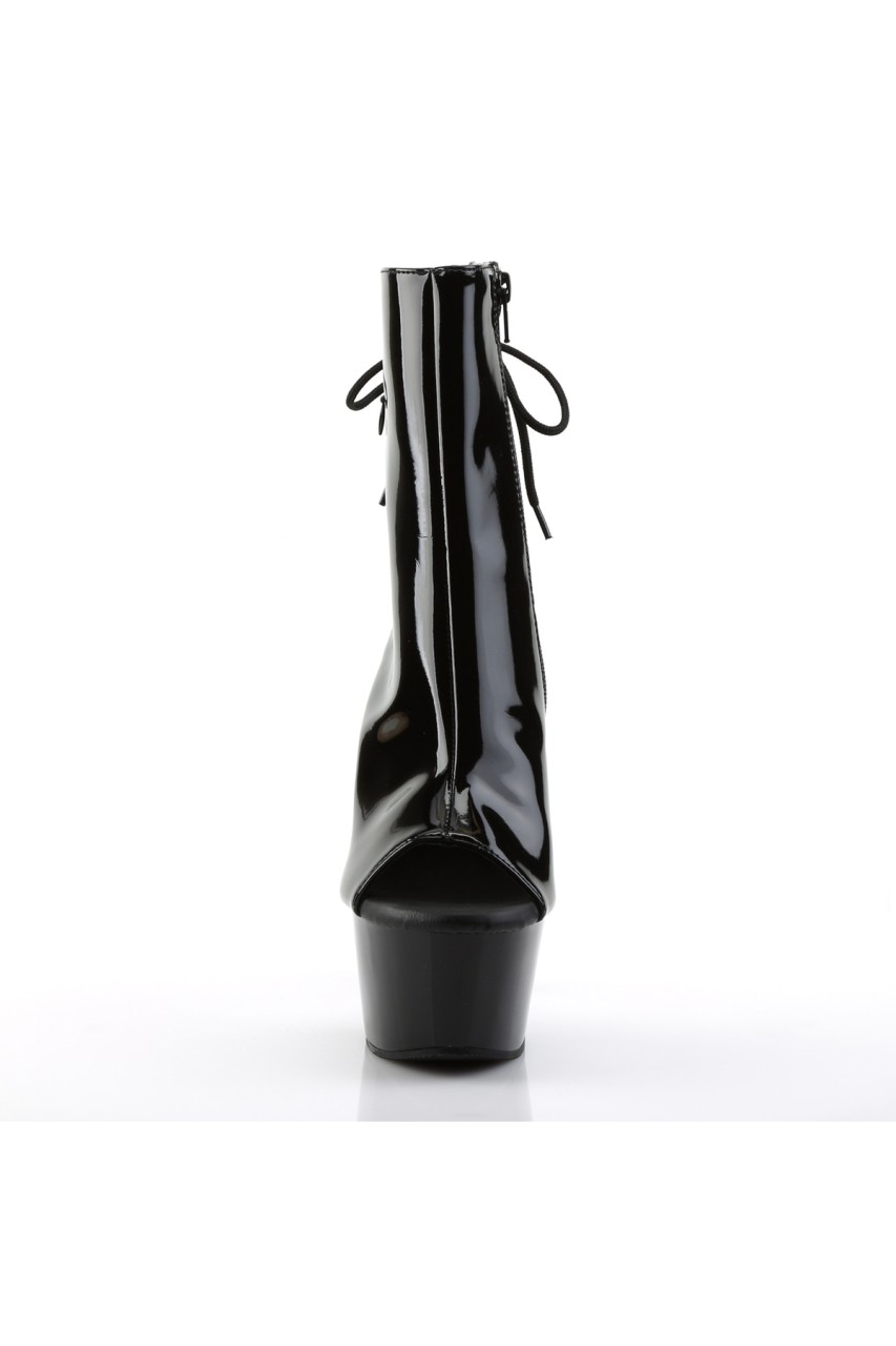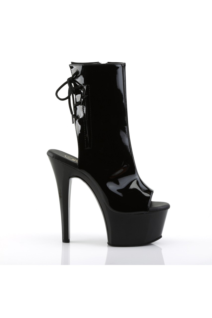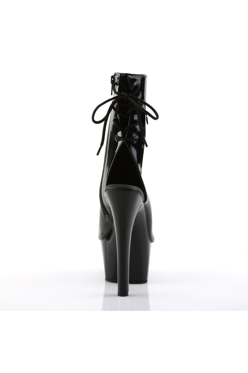 6″” (15.2cm) Heel, 2 1/4″” (5.7cm) Platform Open Toe/Heel Lace-Up Back Ankle Boot with Hidden Zip Pocket, Inner Side Zip Closure