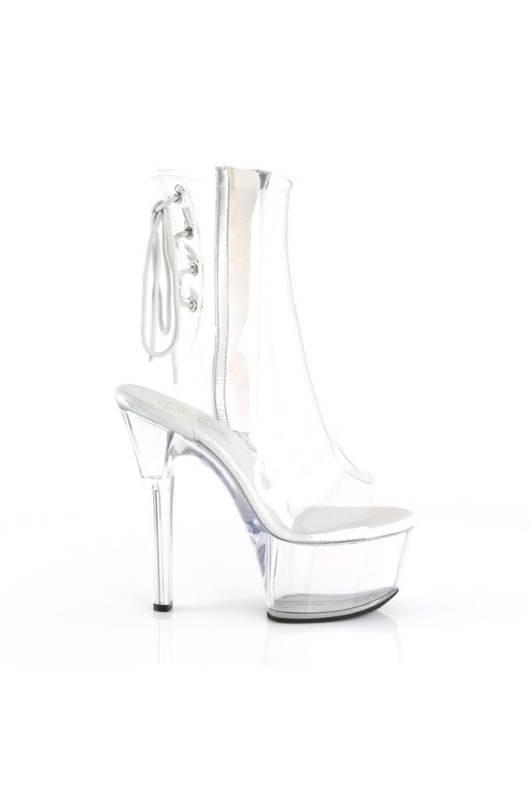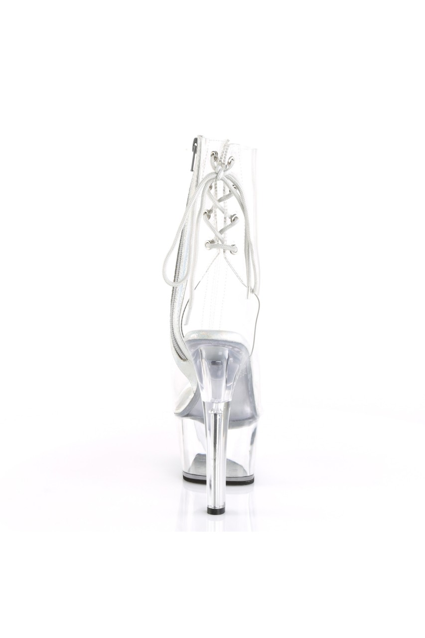 6″” (152mm) Heel, 2 1/4″” (57mm) Platform Open Toe/Heel Lace Up Back Ankle Boot, Inner Side Zip Closure