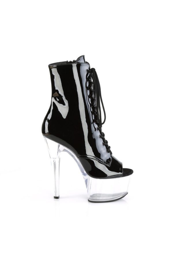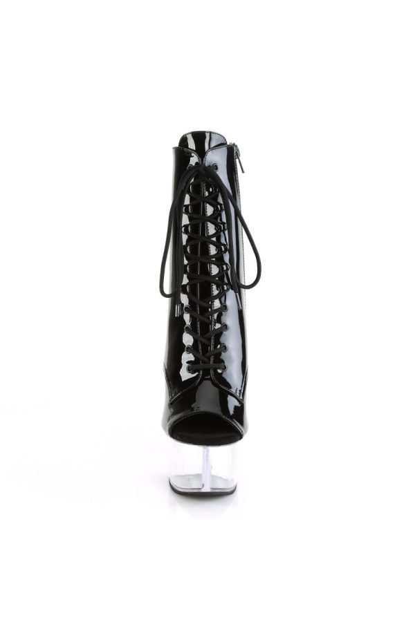 6″” (152mm) Heel, 2 1/4″” (57mm) Platform Open Toe Lace-Up Front Ankle Boot, Inner Side Zip Closure