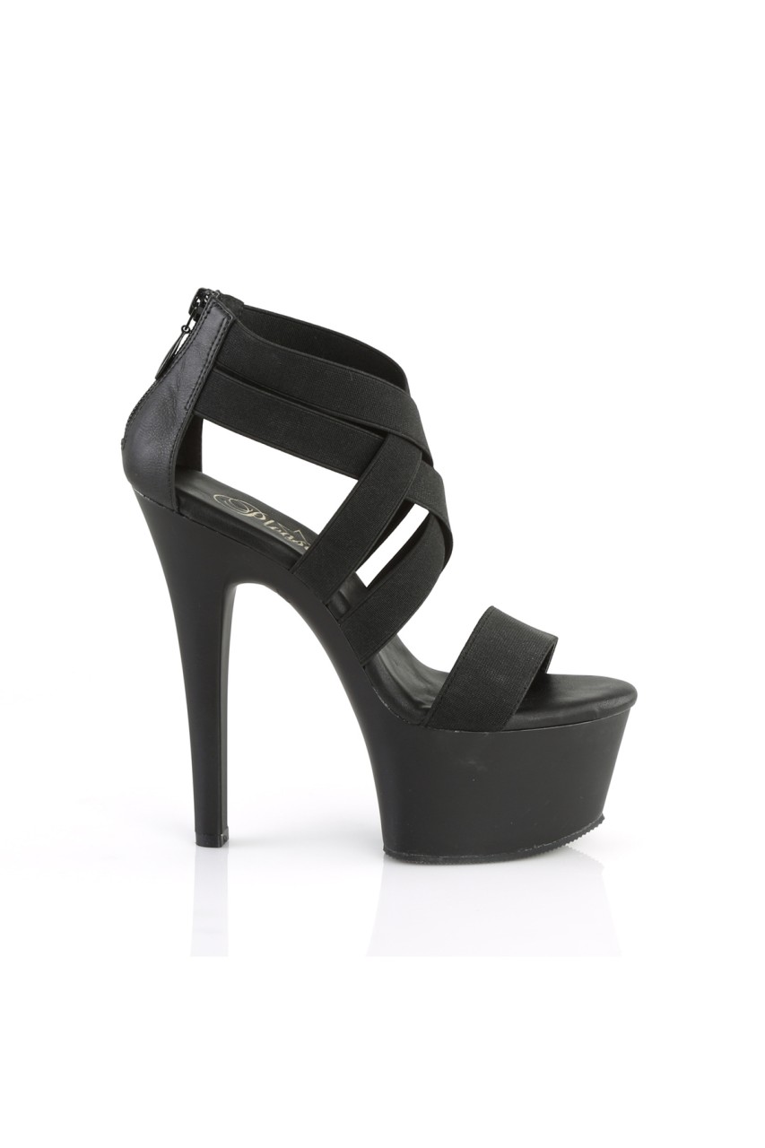6″” (152mm) Heel, 2 1/4″” (57mm) Platform Double Criss Cross Close Back Sandal, Back Zip Closur