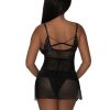 From the Exposed by Magic Silk collection, this style includes: a baby doll featuring flowy, hip length mesh and lace cups, adjustable shoulder straps with black sliders, a strappy keyhole design in the back, and a matching panty with a crotchless cutout and soft lace all around to hug your hips. Soft lace and stretchy mesh in a mesmerizing shade of black. Hand Wash Cold. No Bleach. Dry Flat. 90% Nylon, 10% Spandex